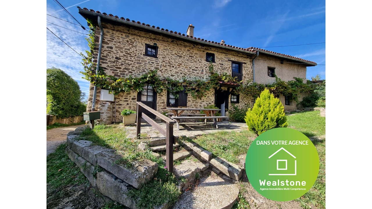 BEAUCOUP DE CHARME POUR CETTE MAISON EN PIERRES A LA CAMPAGNE - IDEALE POUR UNE FAMILLE ET POUR RECEVOIR - POUR RESIDENCE SECONDAIRE OU PRINCIPALE - Située dans un petit hameau à St Chamond (42400) Loire. Possibilité de créer 2 logements distincts avec 2 entrées séparées. L'ensemble représente 227 m2 habitable, composé de demi niveaux avec un potentiel de 5 chambres + 2 mezzanines. On a 2 cuisines et 2 salles de bains. Sans oublier la cave, plus la chaufferie-buanderie avec un vrai four à pain. L'extérieur comprend une terrasse devant la maison et un grand terrain non attenant de plus de 7 000 m2 à proximité de la maison, idéal pour un cheval. En termes d'équipements : chauffage central fuel + cheminée foyer ouvert dans le séjour (à remettre aux normes), wc à chaque niveau, assainissement individuel à remettre aux normes .... BIEN A FORT POTENTIEL A RENOVER ET A DECOUVRIR - Renseignements et visite, contacter Franck MARTELLINO ou l'agence Wealstone