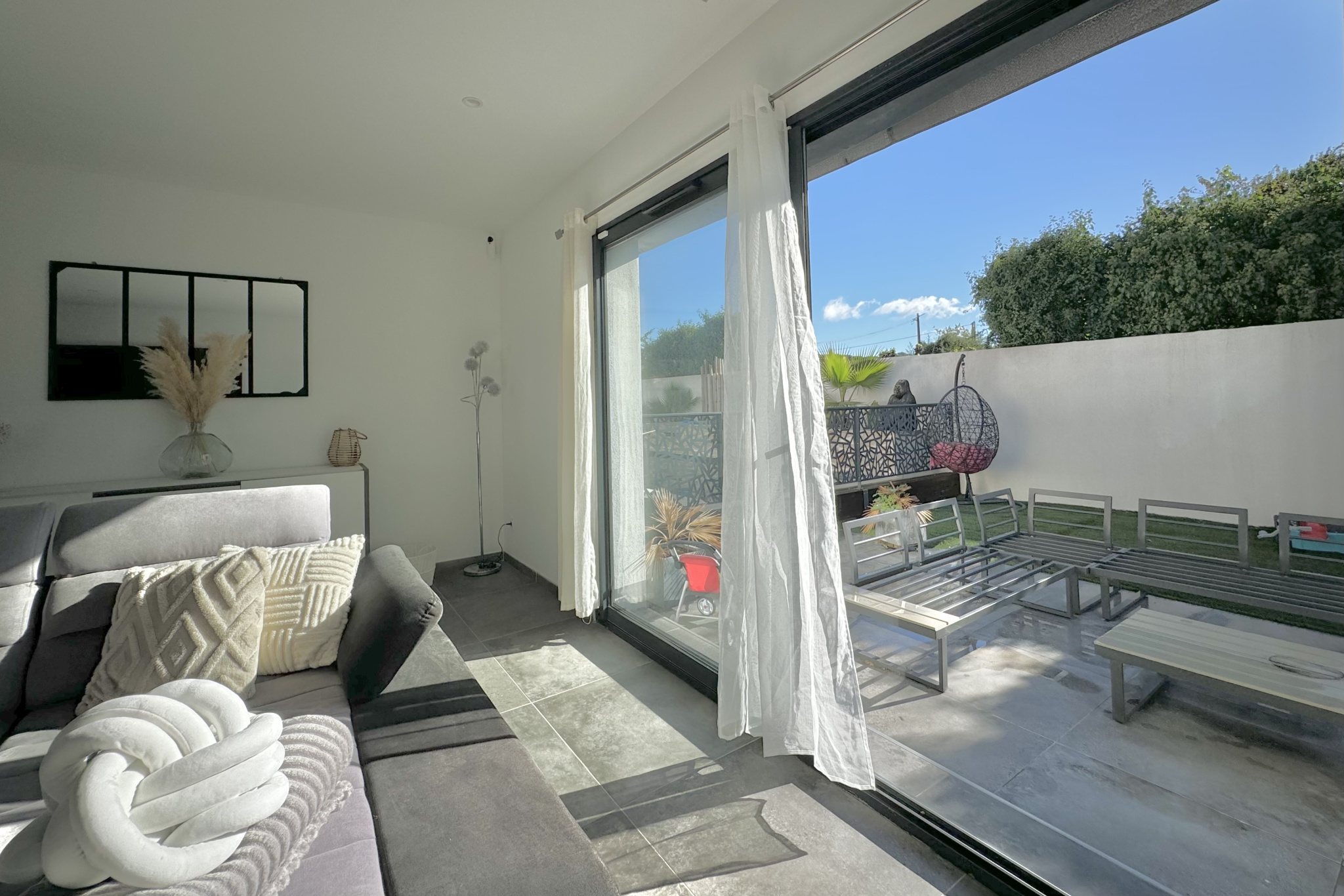 L'extérieur, soigneusement aménagé, offre différents espaces terrasses et une piscine pour profiter pleinement du cadre de vie.