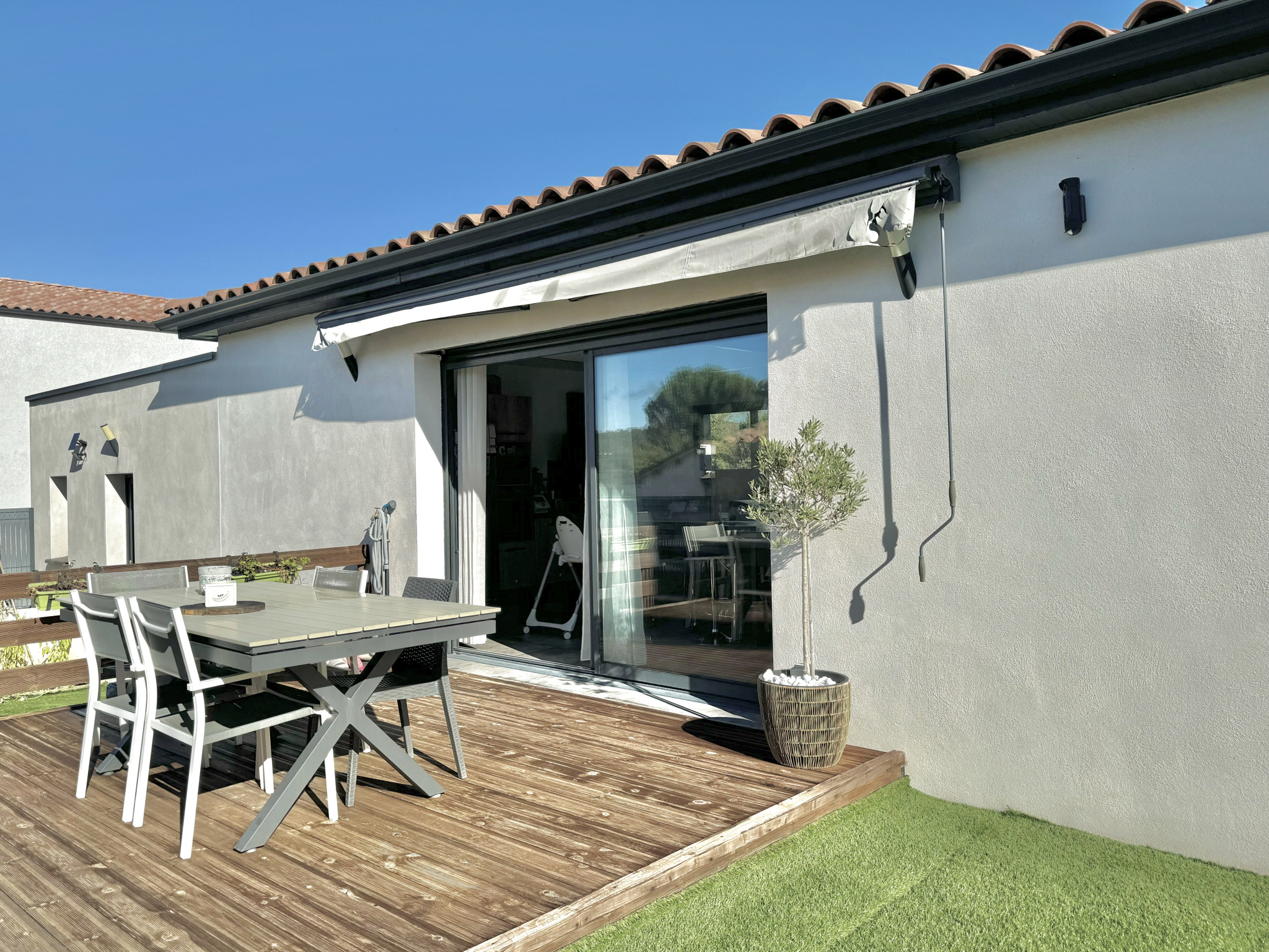 Côté prestations : volets roulants électriques, double vitrage, chauffage gainable,ballon thermodynamique, système domotisé, porte de garage motorisée, et excellent DPE classé A assurant confort et performance énergétique.