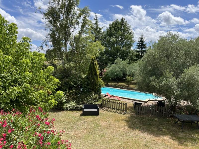 Beau parc arboré avec piscine.