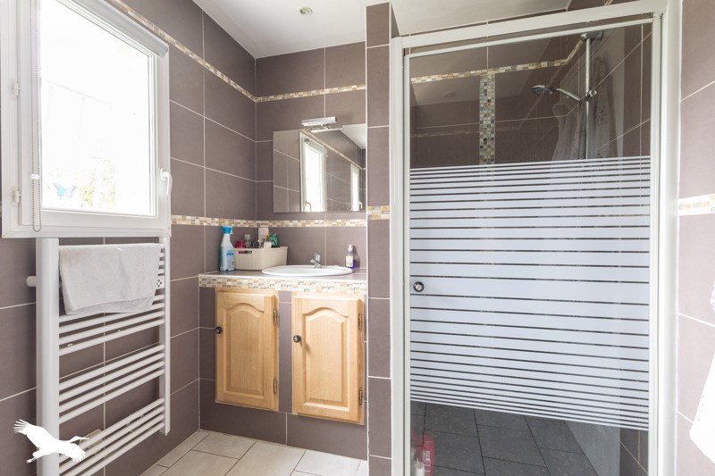 Une sdbe, un wc séparé, un cellier avec dressing.