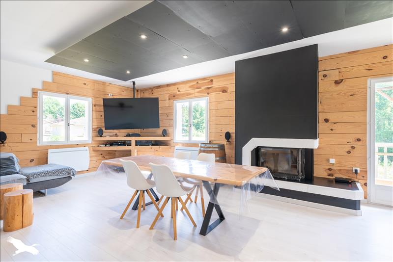 Dans une commune à 20 min à l'ouest de Mont de Marsan, maison familiale aux volumes généreux située dans un environnement arboré.