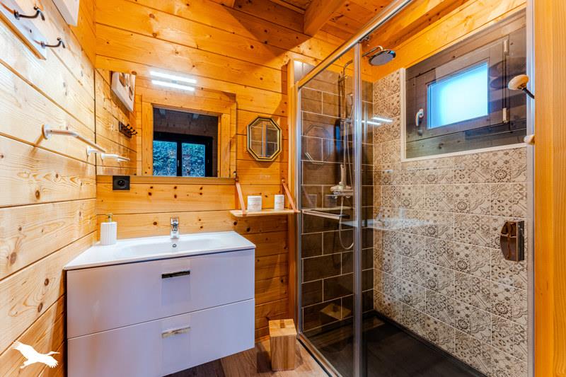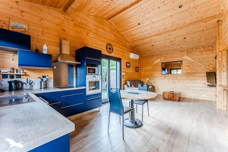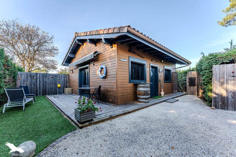Bénéficiez également d'un beau chalet indépendant en bois avec séjour et cuisine, chambre parentale, buanderie, wc et un bel extérieur.