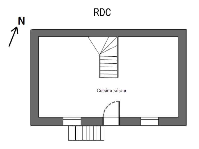 Maison comprenant: -au rez de chaussée séjour avec coin cuisine aménagée et équipée.A l'étage: 2 chambres et une salle d'eau.