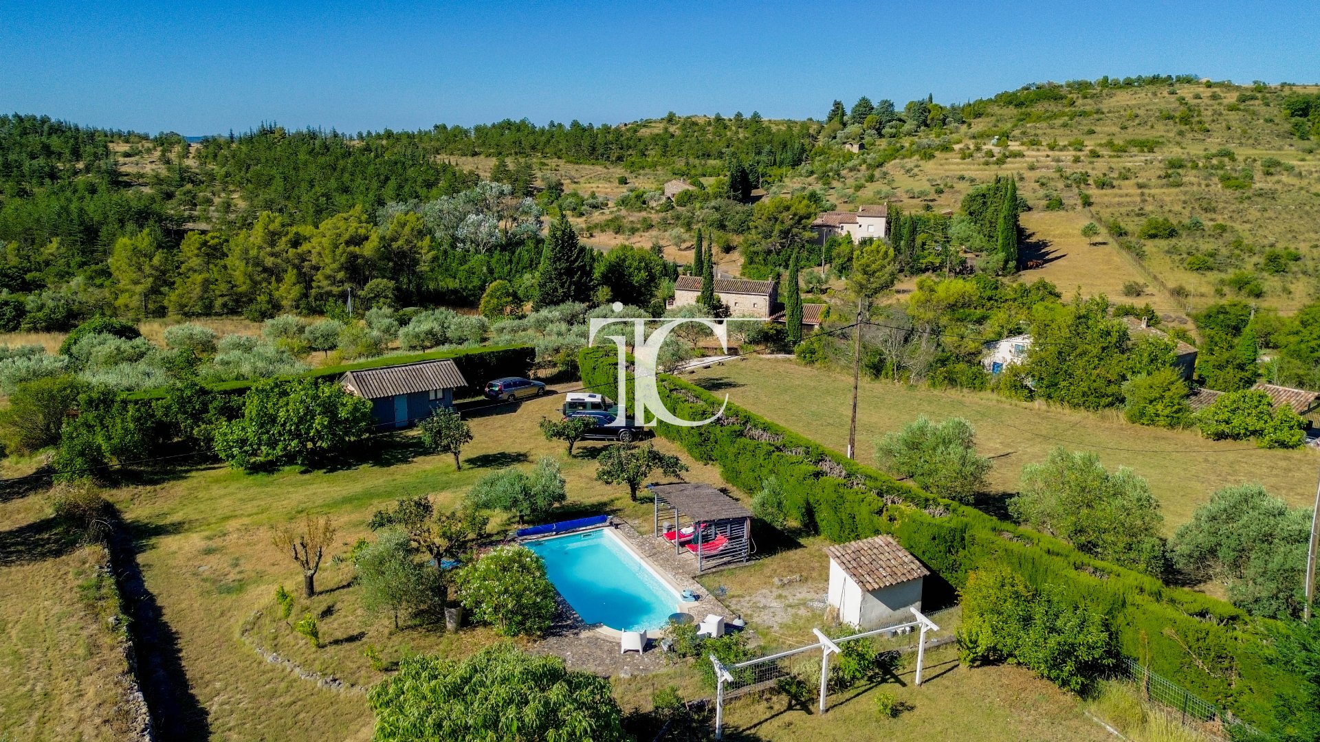 Le terrain de 4362 m², magnifiquement arboré d'essences méditerranéennes, notamment de nombreux oliviers, s'étend sur une belle surface offrant intimité et sérénité.