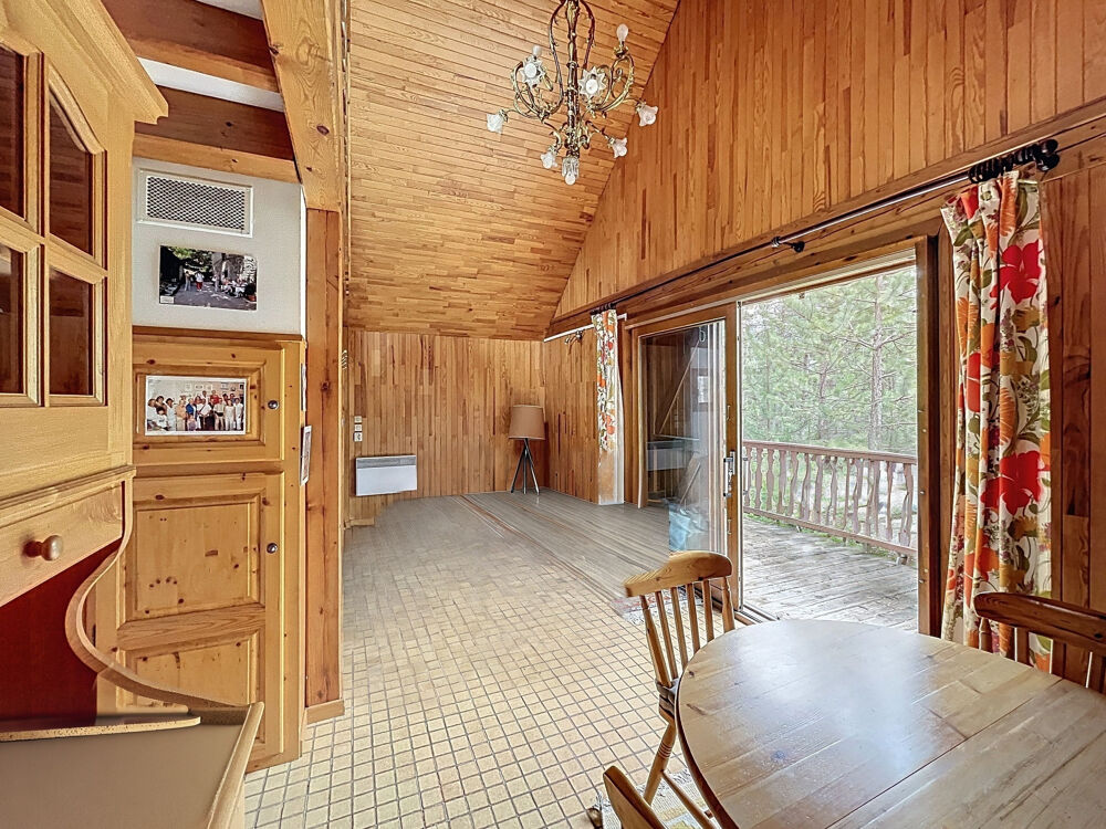 Situé dans un environnement calme et verdoyant ce chalet bénéficie d'une terrasse de 14 m2 sur les hauteurs de la commune de Barcelonnette. L'espace intérieur mesurant 120 m2 au total, se divise au rez-de chaussée de l'habitation principale d'environ 60 m2 composé d'un séjour avec cheminée, d'une cuisine indépendante et un espace nuit comprenant 1 chambre, une chambrette avec un lit superposé et une grande mezzanine à l'étage.Au rez-de-jardin 2 pièces d'environ 60 m2 non communicantes avec le rdc, composées d'une chambre avec salle d'eau et wc et une pièce à terminer.