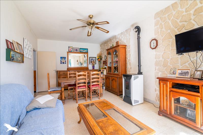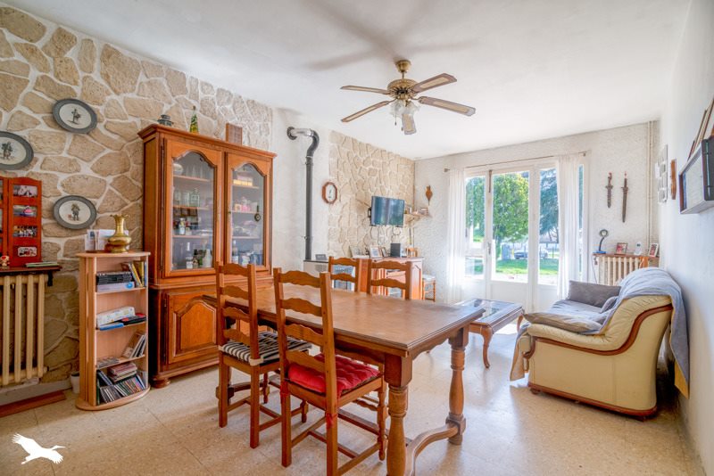 Proche de toutes les commodités, villa T4 de plain-pied, séjour lumineux avec poêle à granulé.