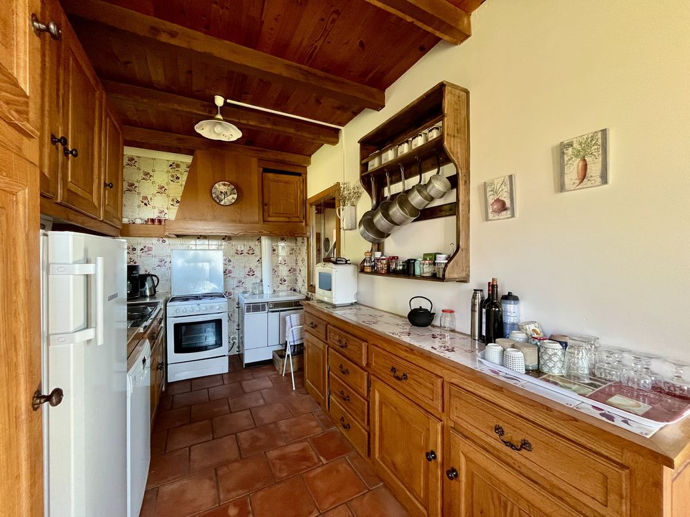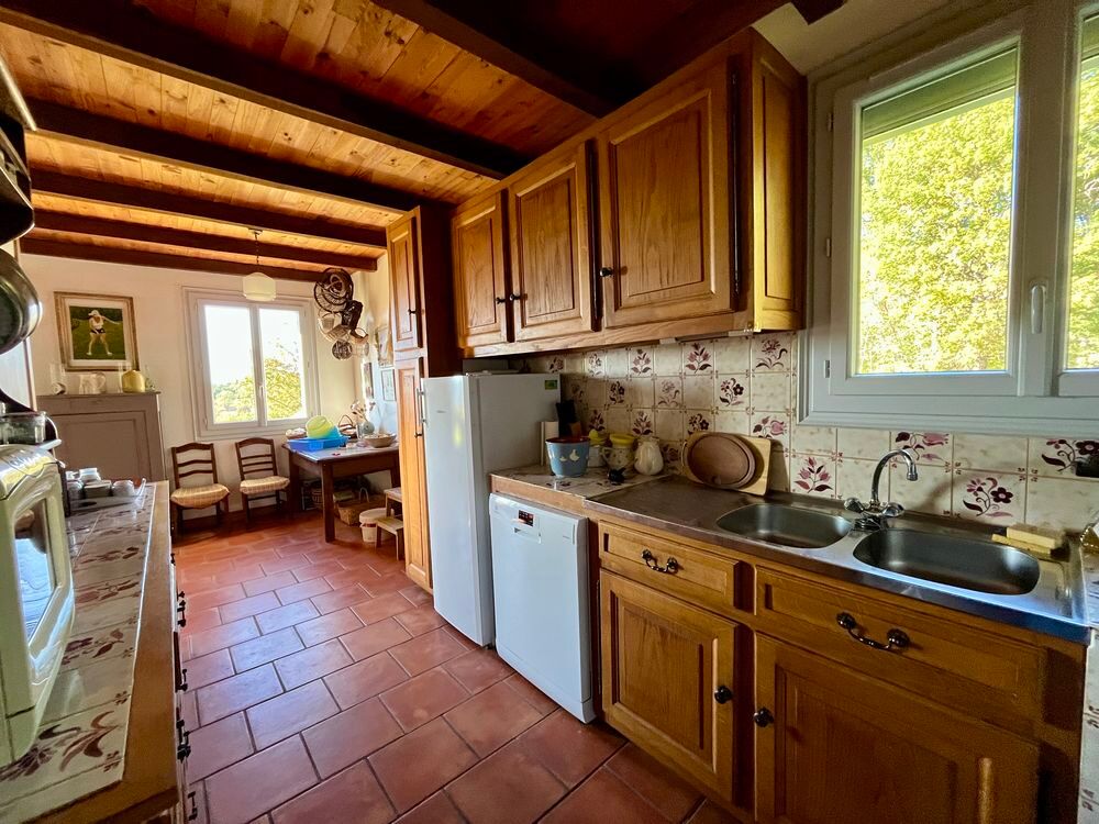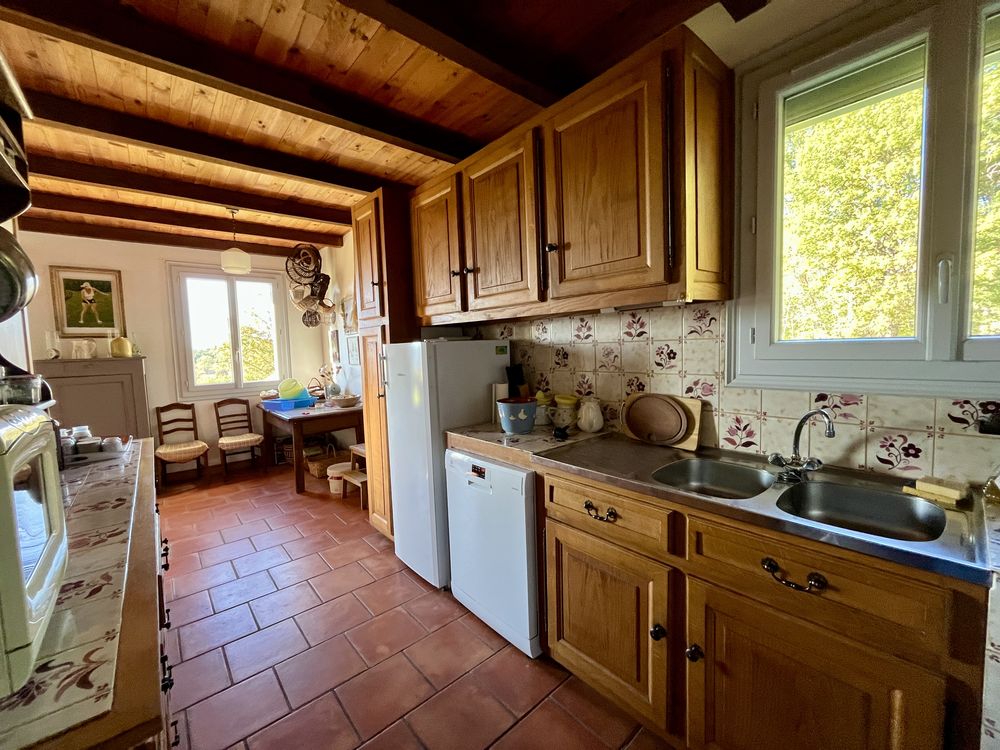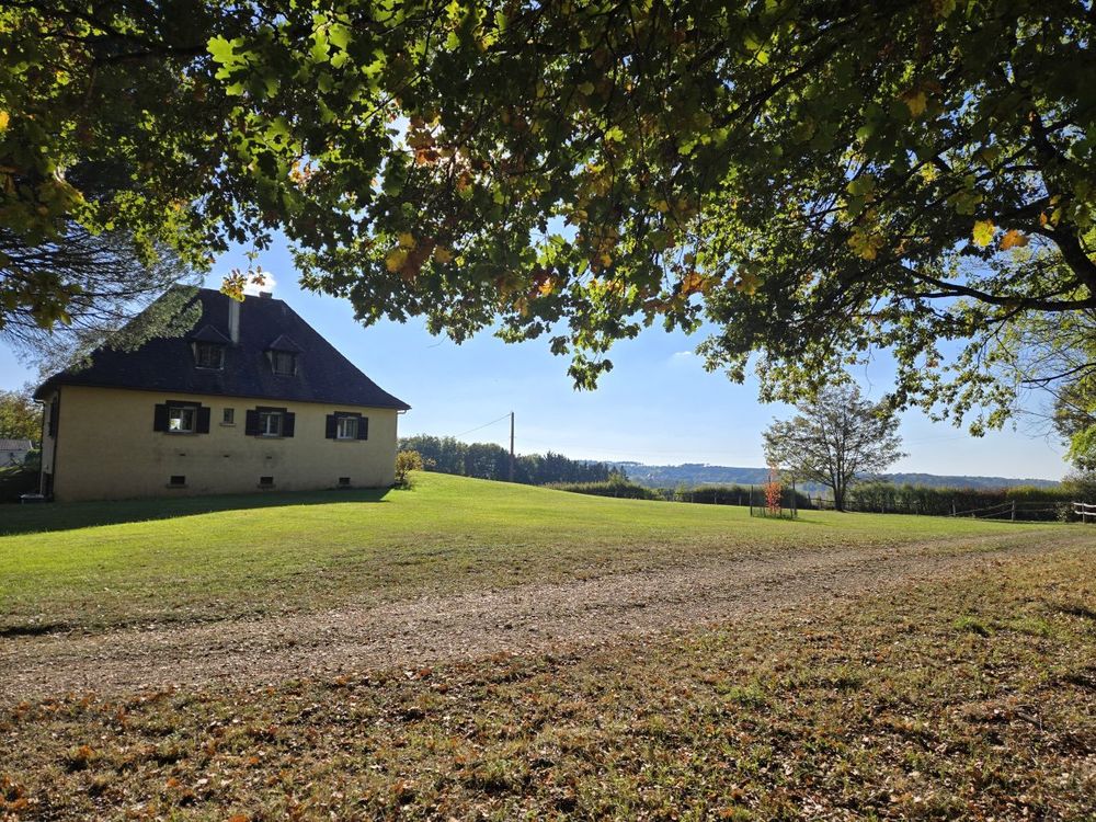 Sur les hauteurs, avec une vue dégagée sur la vallée, découvrez cette charmante maison de construction traditionnelle de type périgourdin, agréable à vivre et pleine de potentiel. Elle offre une partie à vivre de plain-pied comprenant une pièce de vie lumineuse avec cheminée à foyer ouvert donnant sur la terrasse couverte et un espace cuisine aménagé, trois chambres avec placard et une salle de bains. Le grenier, accessible par un escalier, pourra grâce à son volume être aménagé selon vos envies pour agrandir l'espace habitable. Vous disposez d'un sous-sol semi enterré avec un vaste garage de 52 m², une cave ainsi qu'un studio indépendant à rafraîchir, disposant de sa propre salle d'eau avec toilettes. Actuellement, la maison est chauffée au bois, avec une cheminée à foyer ouvert et une cuisinière à bois. Pour en faire une habitation principale, il faudra prévoir l'installation d'un chauffage central.