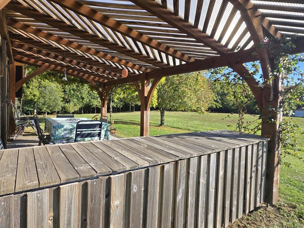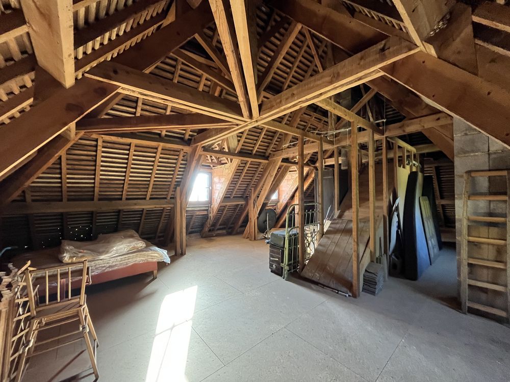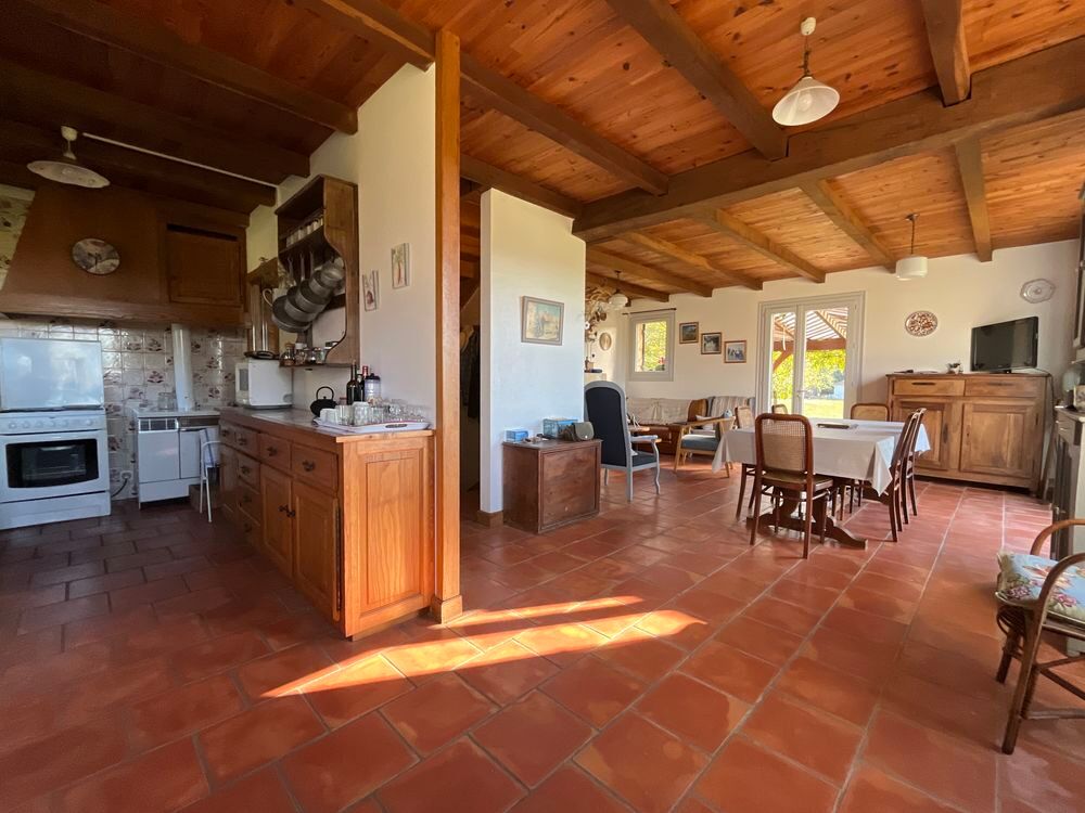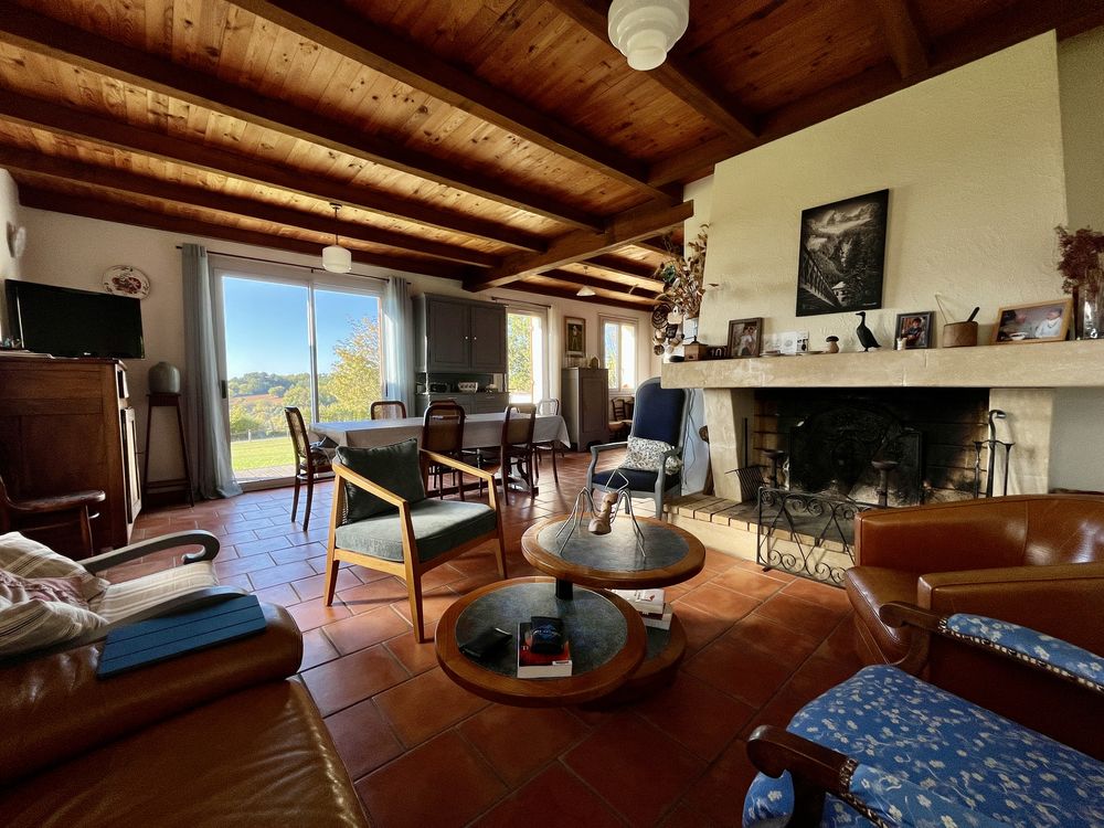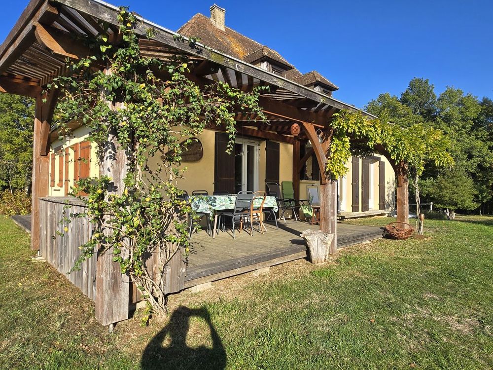 Sur les hauteurs, avec une vue dégagée sur la vallée, découvrez cette charmante maison de construction traditionnelle de type périgourdin, agréable à vivre et pleine de potentiel. Elle offre une partie à vivre de plain-pied comprenant une pièce de vie lumineuse avec cheminée à foyer ouvert donnant sur la terrasse couverte et un espace cuisine aménagé, trois chambres avec placard et une salle de bains. Le grenier, accessible par un escalier, pourra grâce à son volume être aménagé selon vos envies pour agrandir l'espace habitable. Vous disposez d'un sous-sol semi enterré avec un vaste garage de 52 m², une cave ainsi qu'un studio indépendant à rafraîchir, disposant de sa propre salle d'eau avec toilettes. Actuellement, la maison est chauffée au bois, avec une cheminée à foyer ouvert et une cuisinière à bois. Pour en faire une habitation principale, il faudra prévoir l'installation d'un chauffage central.