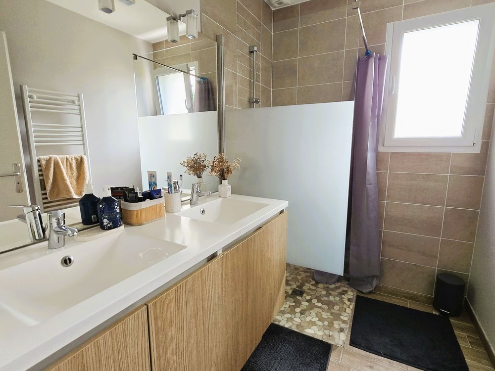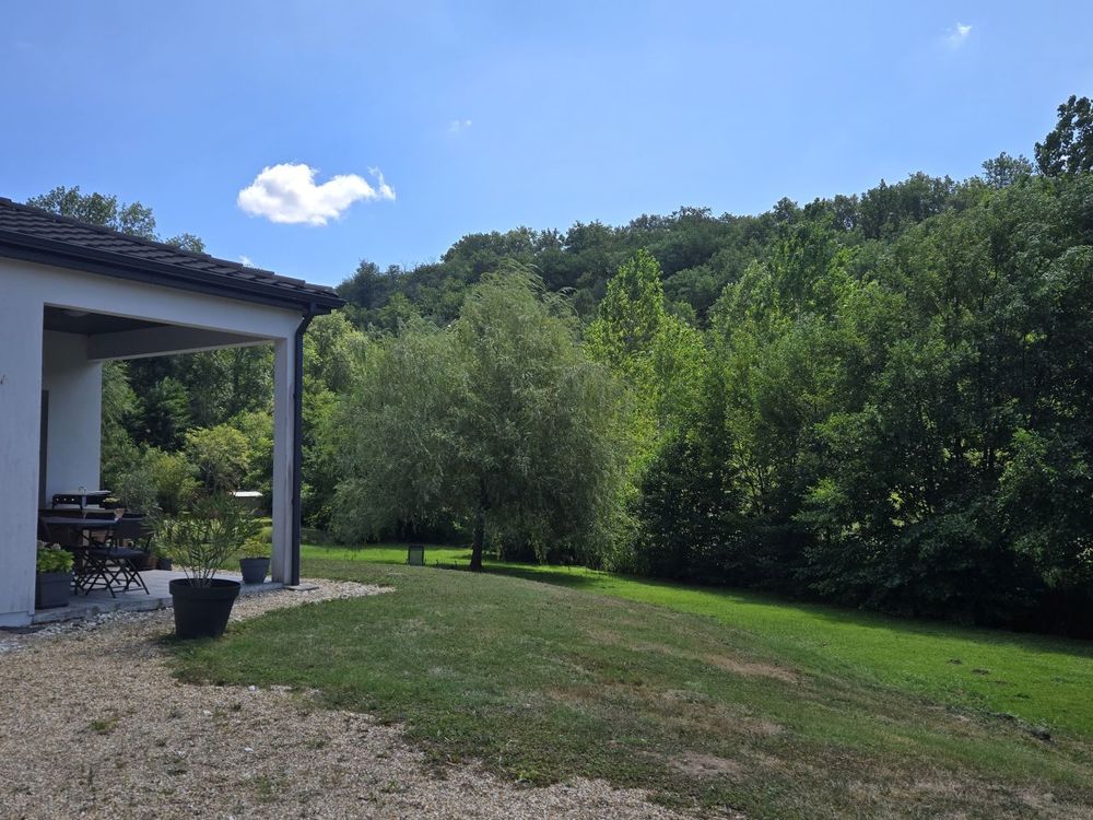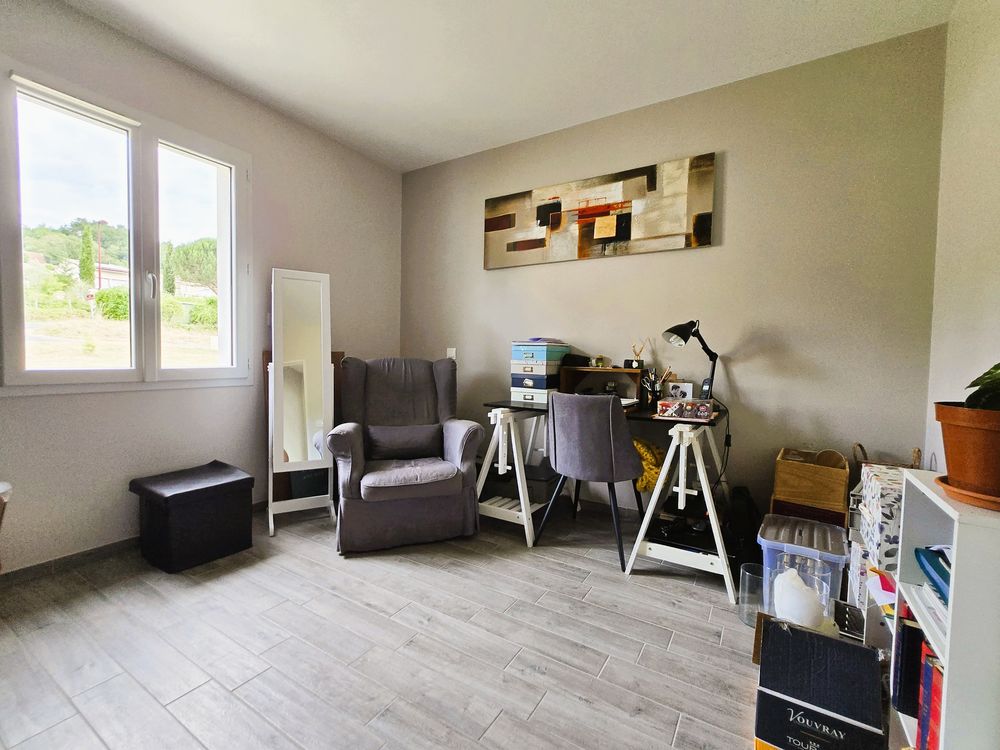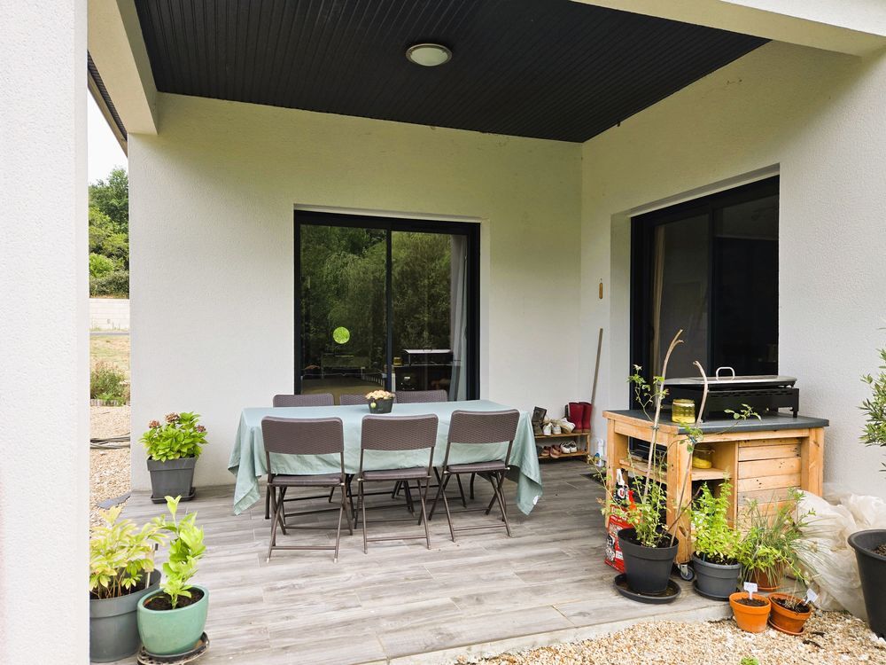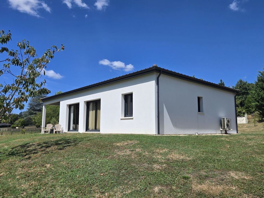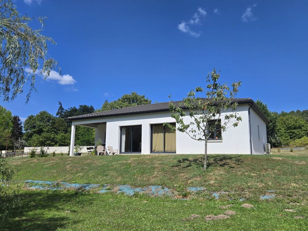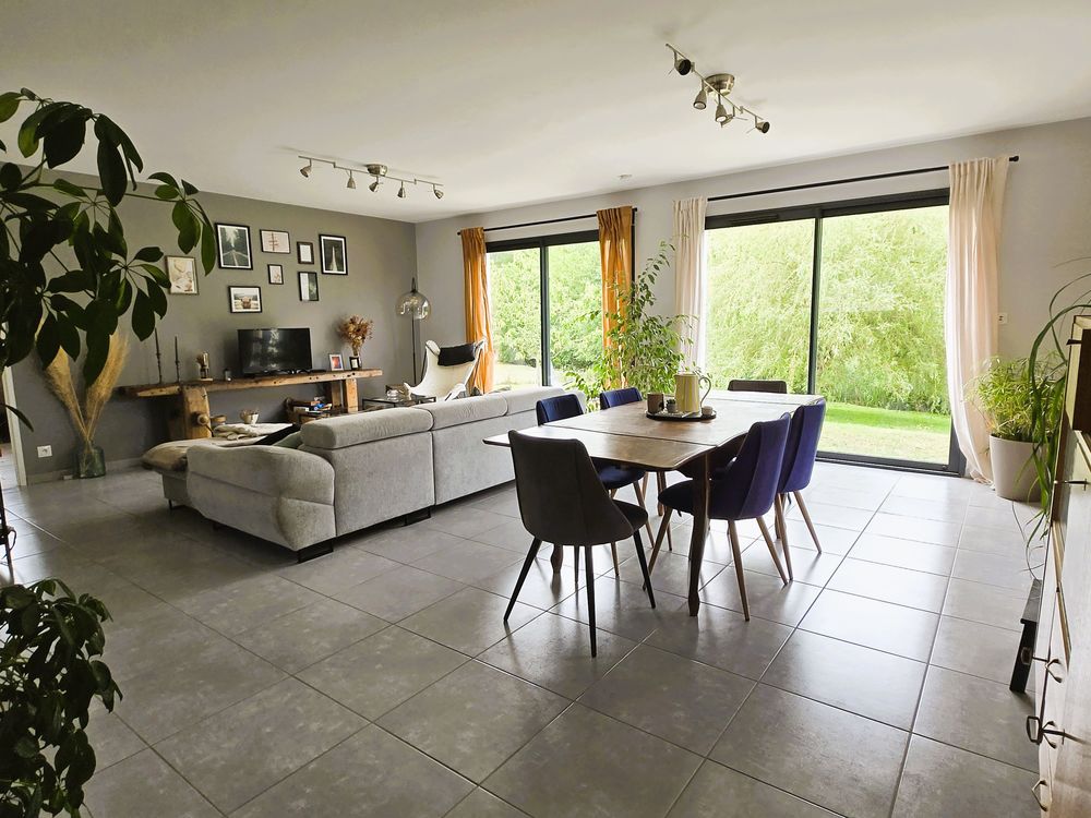 Découvrez cette maison de plain-pied construite en 2018, offrant un cadre de vie agréable proche des commerces et écoles. Elle se compose d'une entrée avec toilettes indépendants, ouvrant sur un espace de vie très lumineux d'environ 44 m² grâce à ses trois baies vitrées, avec cuisine équipée, cellier-buanderie, une salle d'eau, trois chambres dont une suite parentale avec salle d'eau privative. Le confort est assuré par un chauffage au sol alimenté par pompe à chaleur, garantissant une excellente performance énergétique. À l'extérieur, vous profiterez d'une terrasse couverte avec vue sur un jardin non clos de 1 882 m², bordé par un ruisseau, + cabanon en bois d'environ 14 m².