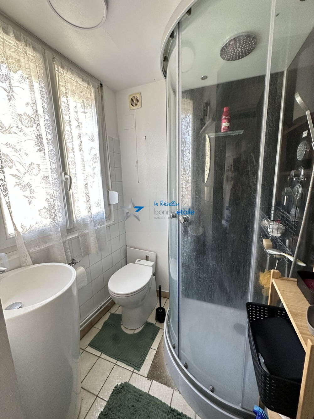 Une salle de bains avec douche et WC.