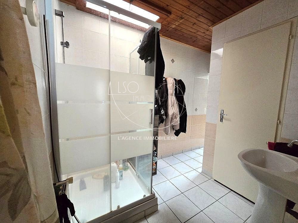 La deuxième partie de la maison dessert une salle d'eau dans couloir, une cuisine, une arrière cuisine, un séjour, une chambre avec salle d'eau et WC.