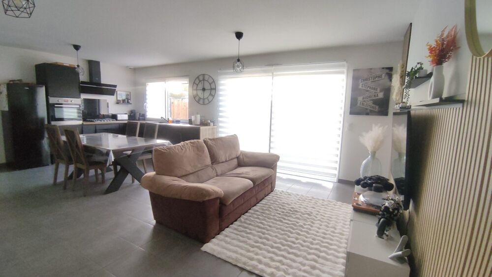 La cuisine ouverte s'intègre harmonieusement à l'espace de vie.Trois chambres confortables, une salle d'eau, un WC indépendant, une buanderie et un garage complètent l'ensemble.