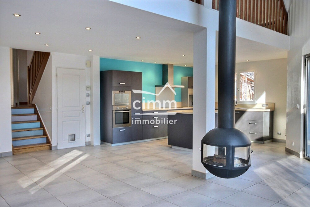 Un demi-niveau plus haut, découvrez un lumineux séjour de 52 m² environ avec son plafond cathédrale et ses larges baies vitrées, sa cheminée suspendue et sa cuisine moderne, ouverte sur la pièce de vie.