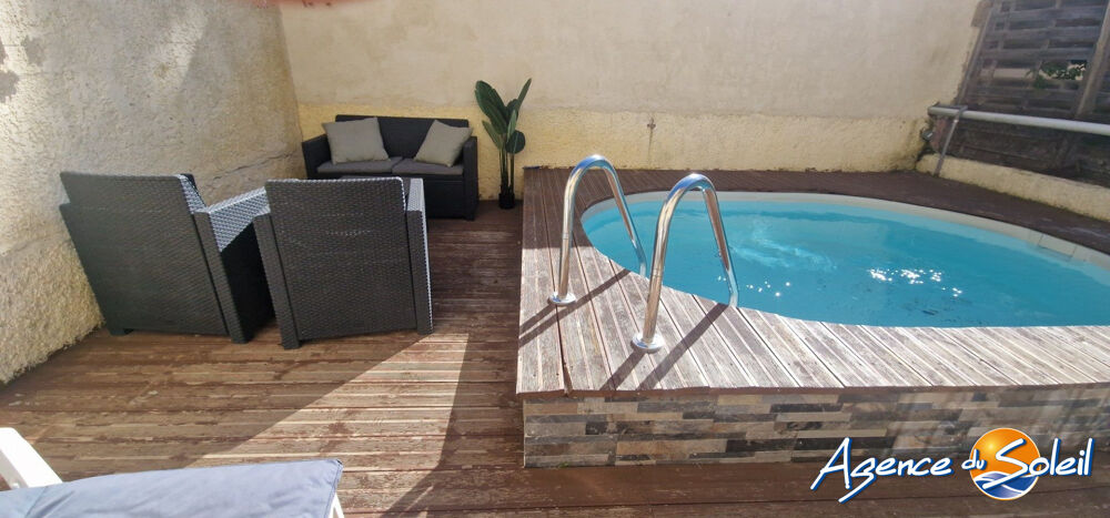 Au rez-de-chaussée, vous apprécierez une pièce de vie lumineuse avec cuisine ouverte entièrement équipée, donnant accès à une agréable terrasse exposée plein sud avec piscine.