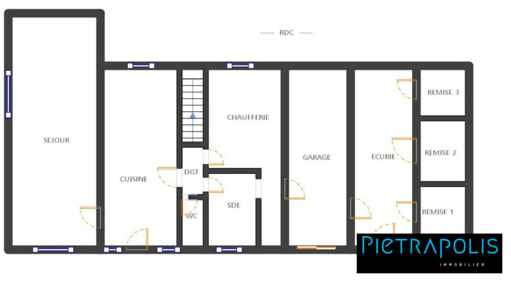 Au RDC : une cuisine de 26 m², un séjour de 22,04 m², un WC, une salle de bains