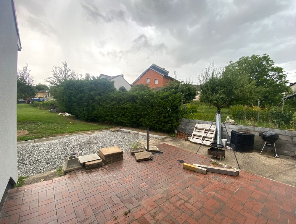 L'agrandissement de la terrasse reste à finaliser. Le grand jardin offre suffisamment d'espace pour des activités de loisirs. Une garage indépendant pour une voiture, situé juste à côté de la maison, complète cet ensemble.