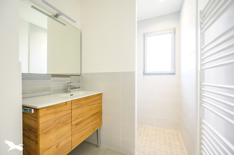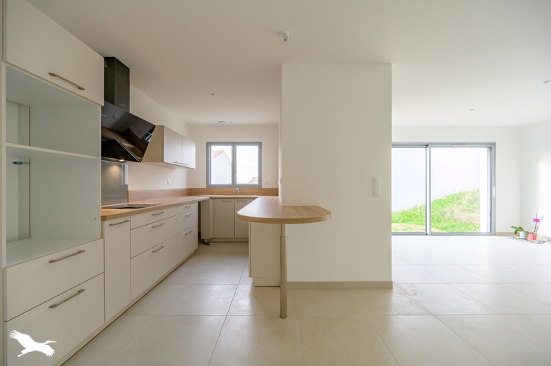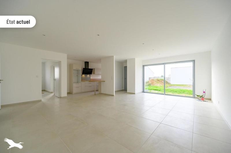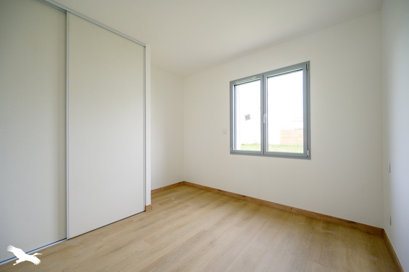 Maison neuve, tout juste livrée, idéalement située au calme avec toutes les commodités offrant entrée, séjour double, cuisine équipée, 3 chambres, salle d'eau, buanderie, garage.