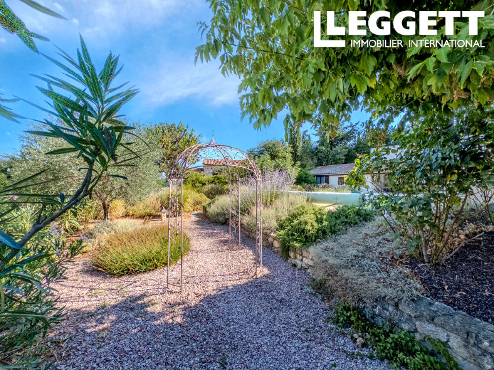 Le jardin arboré et clos de 1 000 m² entoure la propriété avec des allées et des plantations matures.