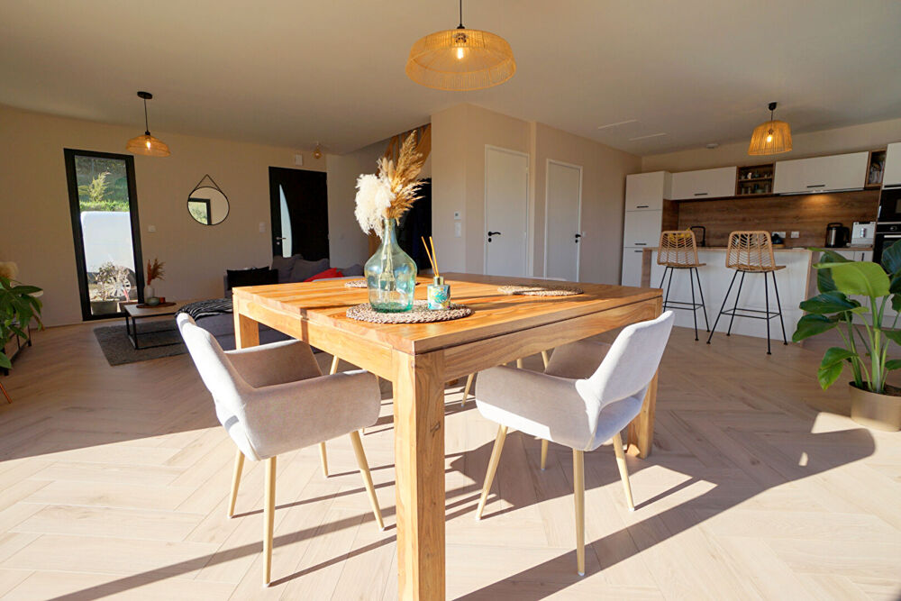 Exclusivité ! Cadre privilégié pour cette jolie maison tout juste sortie de terre qui vous séduira par ses prestations et ses vues imprenables sur la vallée. Au rez-de-chaussée, vous disposerez d'une superbe pièce de vie de près de 50m² à la triple exposition et ornée d'un parquet à bâtons rompus. La cuisine américaine est entièrement équipée et offre également un accès direct aux futures terrasses. A l'étage, un palier dessert 3 chambres ainsi qu'une salle d'eau d'inspiration moderne. L'ensemble est édifié sur environ 647m² de terrain avec garage attenant. Les + : La vue.. c'est indéniable, les prestations, la pompe à chaleur avec chauffage au sol et donc ses faibles coûts d'énergie. (3.49 % honoraires TTC à la charge de l'acquéreur.)