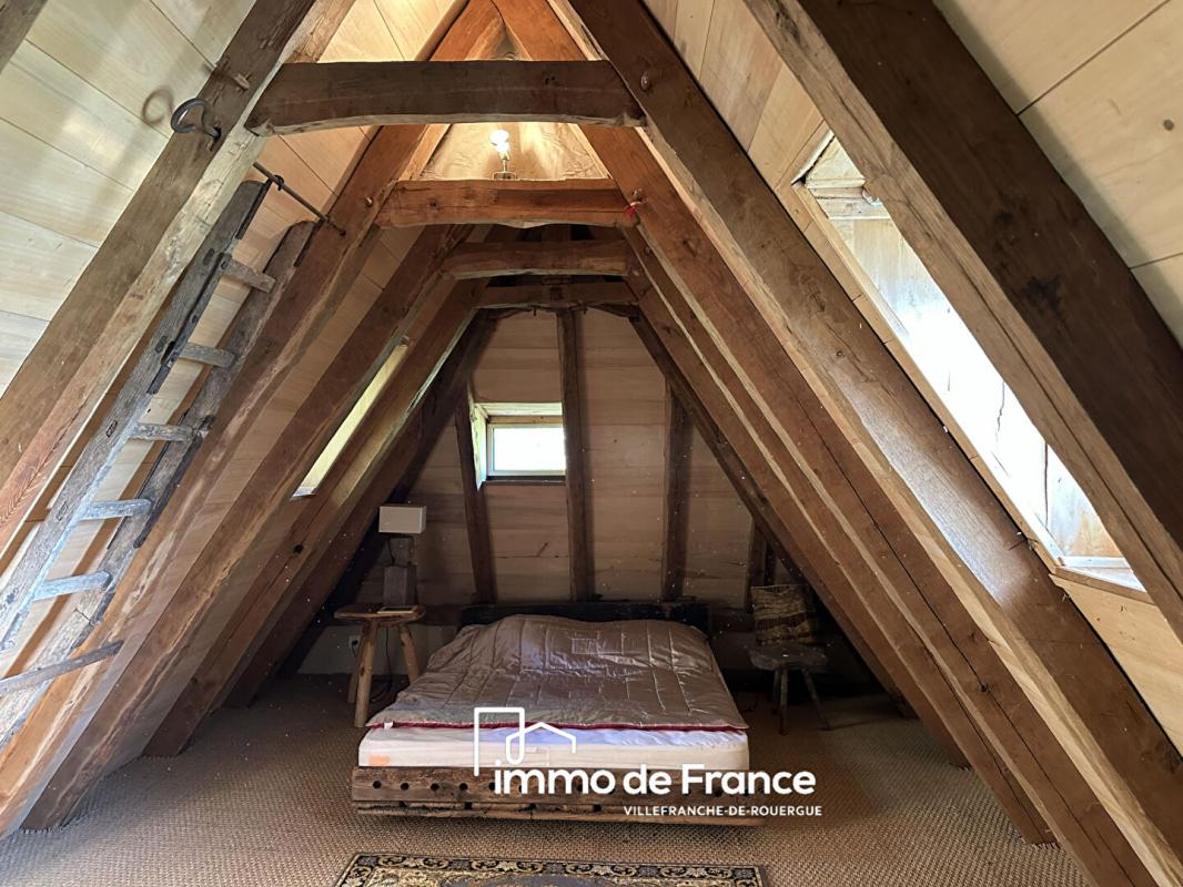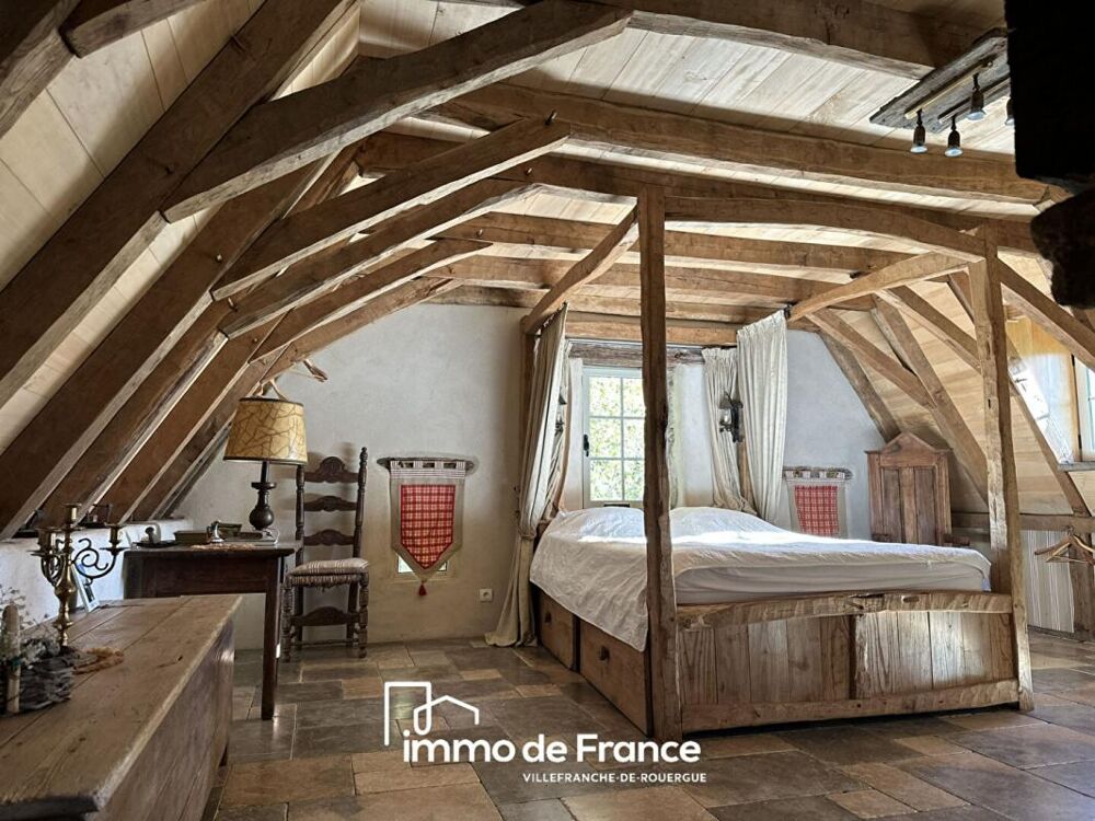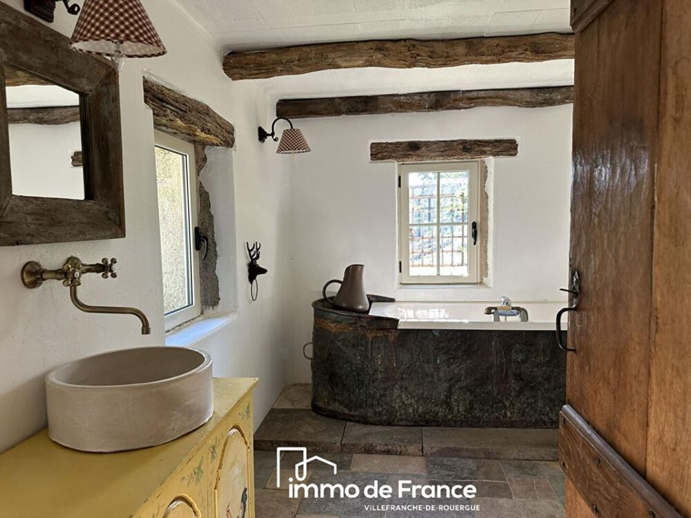 Maison pleine de charme et de caractère au coeur d'un domaine de 13 704 m² longé par un ruisseau. Près d'une jolie cascade, à l'abri de toute nuisance et de voisinage trop proche, au calme absolu, cette ravissante maison en pierre et toiture lauze, construction récente réalisée par des artisans passionnés avec les techniques et le savoir-faire d'autrefois est une bâtisse unique. Elle propose de plain-pied un séjour de 30 m² avec cuisine équipée et four à pains, salle d'eau et toilettes, au 1ier étage une chambre en suite de 40 m² avec cheminée, balcon, salle de bain et wc suspendu, une chambre mansardée au second et un couchage dans le pigeonnier. Maison aux belles prestations et matériaux de qualité à découvrir dans un bel environnement de nature, où le temps s'arrête, et pourtant à seulement quelques kilomètres du village et de ses commerces et à 10 minutes seulement de VILLEFRANCHE DE ROUERGUE.
