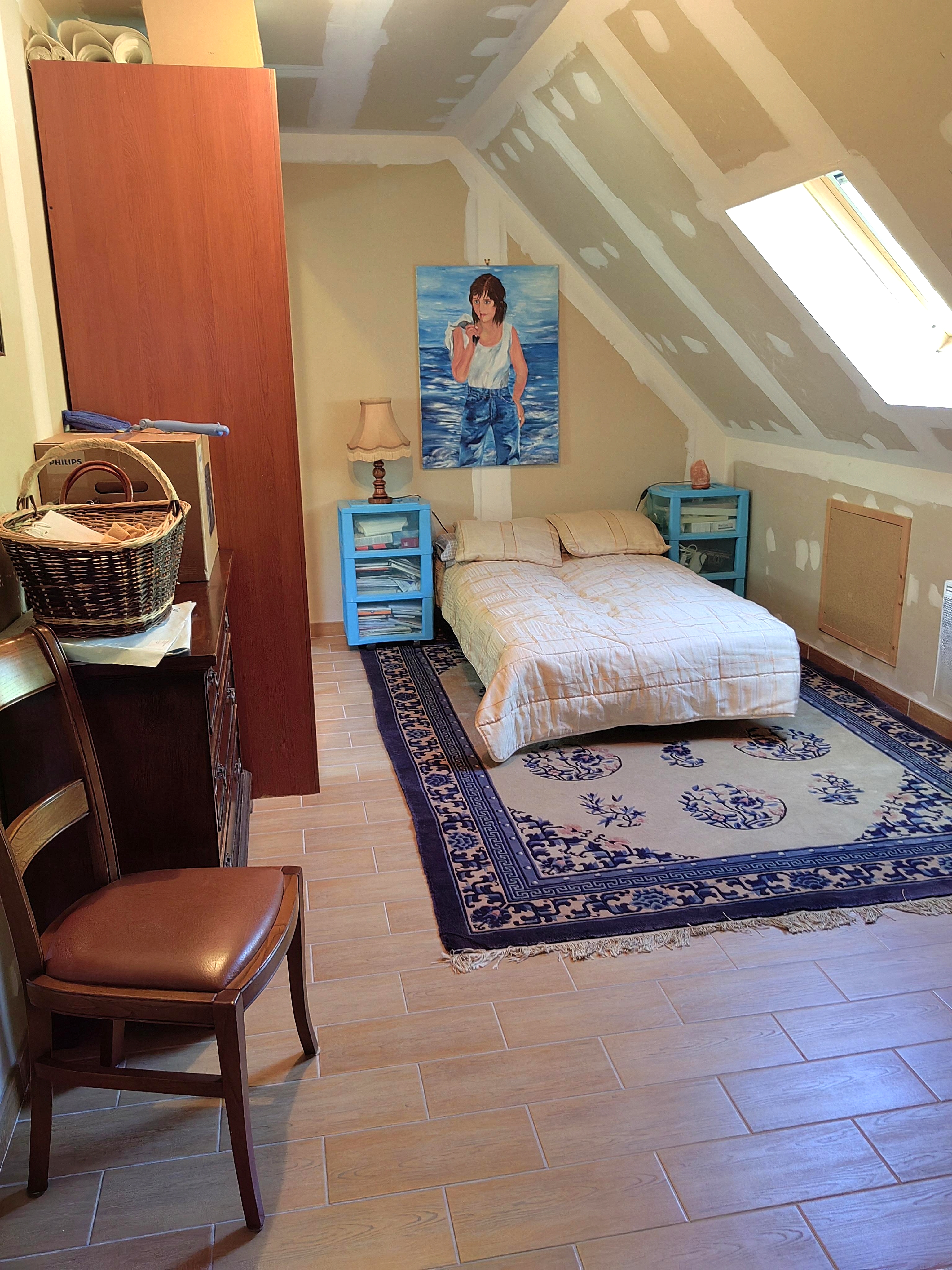 A l'étage vous découvrirez 3 belles chambres une salle de douches, double vasque et toilettes.