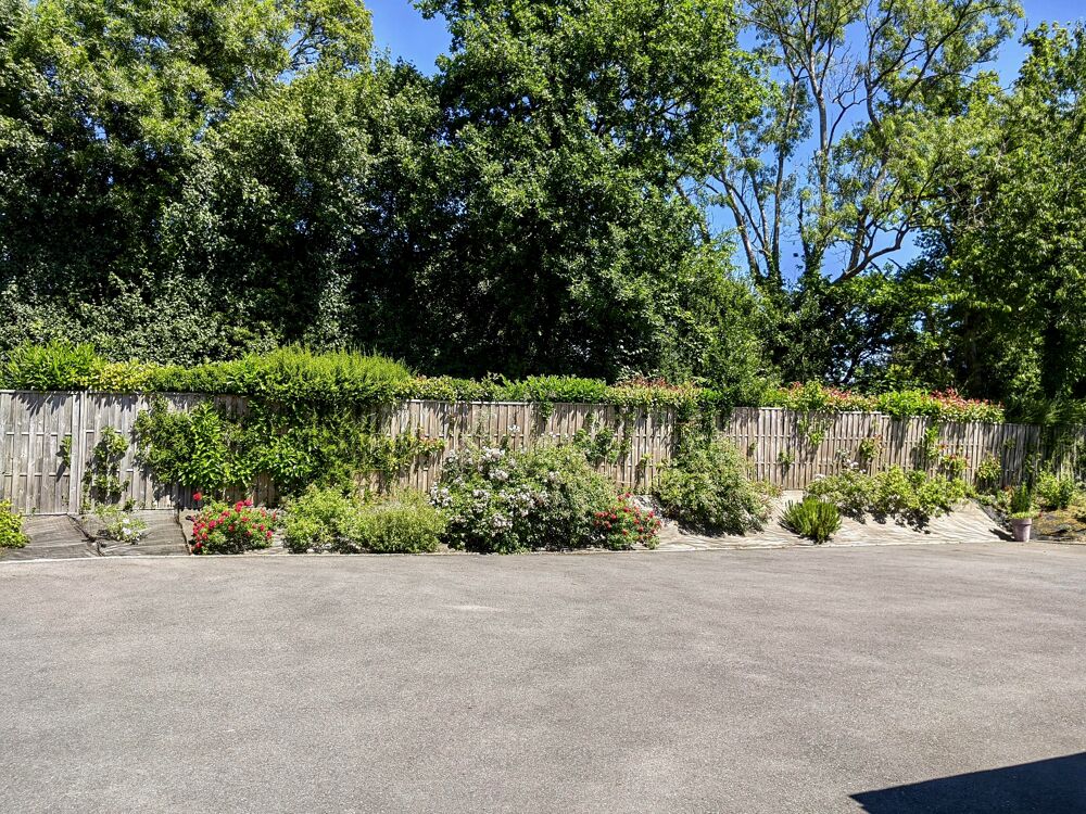 Un jardin clos, fleuri et arboré avec son verger contenant cerisiers, figuiers, pommiers, pêchers etc...