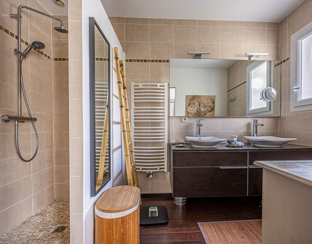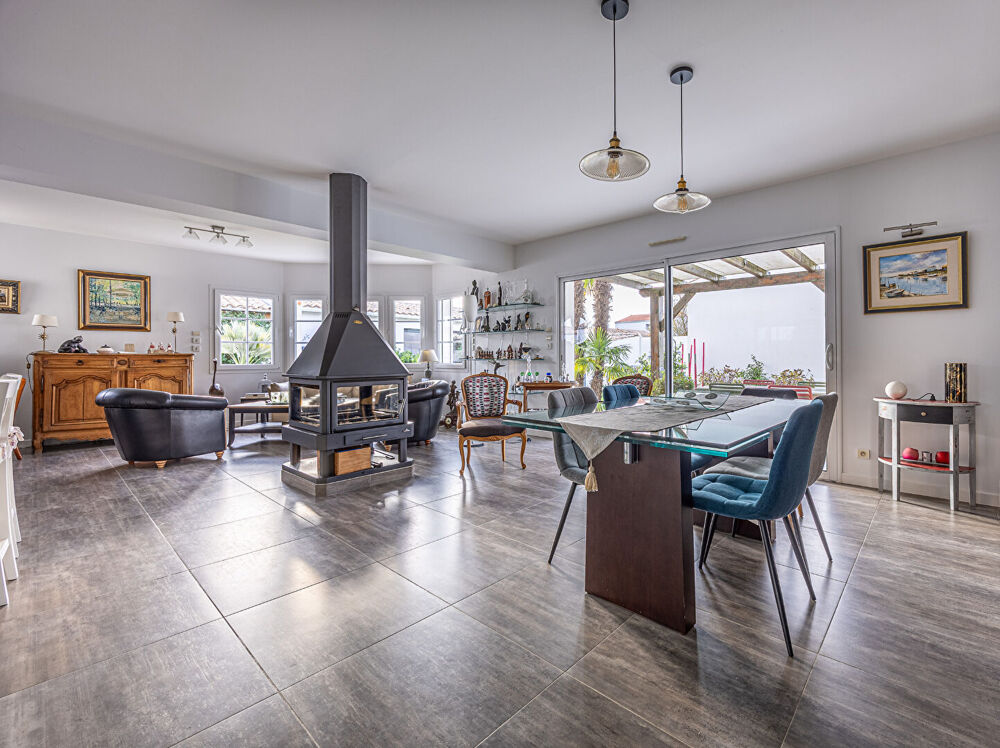 Maison familiale de plain pied d'une surface habitable de 140m² offrant une belle pièce de vie de près de 55 m², cuisine aménagée et équipée, cellier, 4 chambres dont une suite parentale avec une salle de bain privative. Un abri avec une dépendance aménagée et une cave complètent ce bien édifié sur une parcelle de 535 m2 avec une belle piscine située au calme d'une impasse le tout à moins de 3 minutes des commerces (supermarché, etc.), Plus de renseignements en agence (5.00 % honoraires TTC à la charge de l'acquéreur.)Etat général : Bon Etat