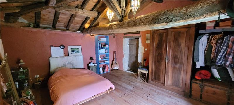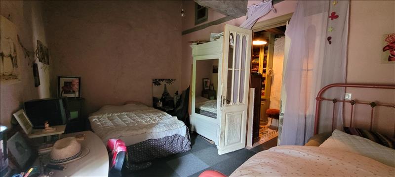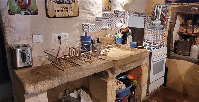 Maison en pierre avec charme comprenant un séjour, une cuisine, WC, salle d'eau, un cellier ainsi que 3 chambres, un bureau à l'étage.