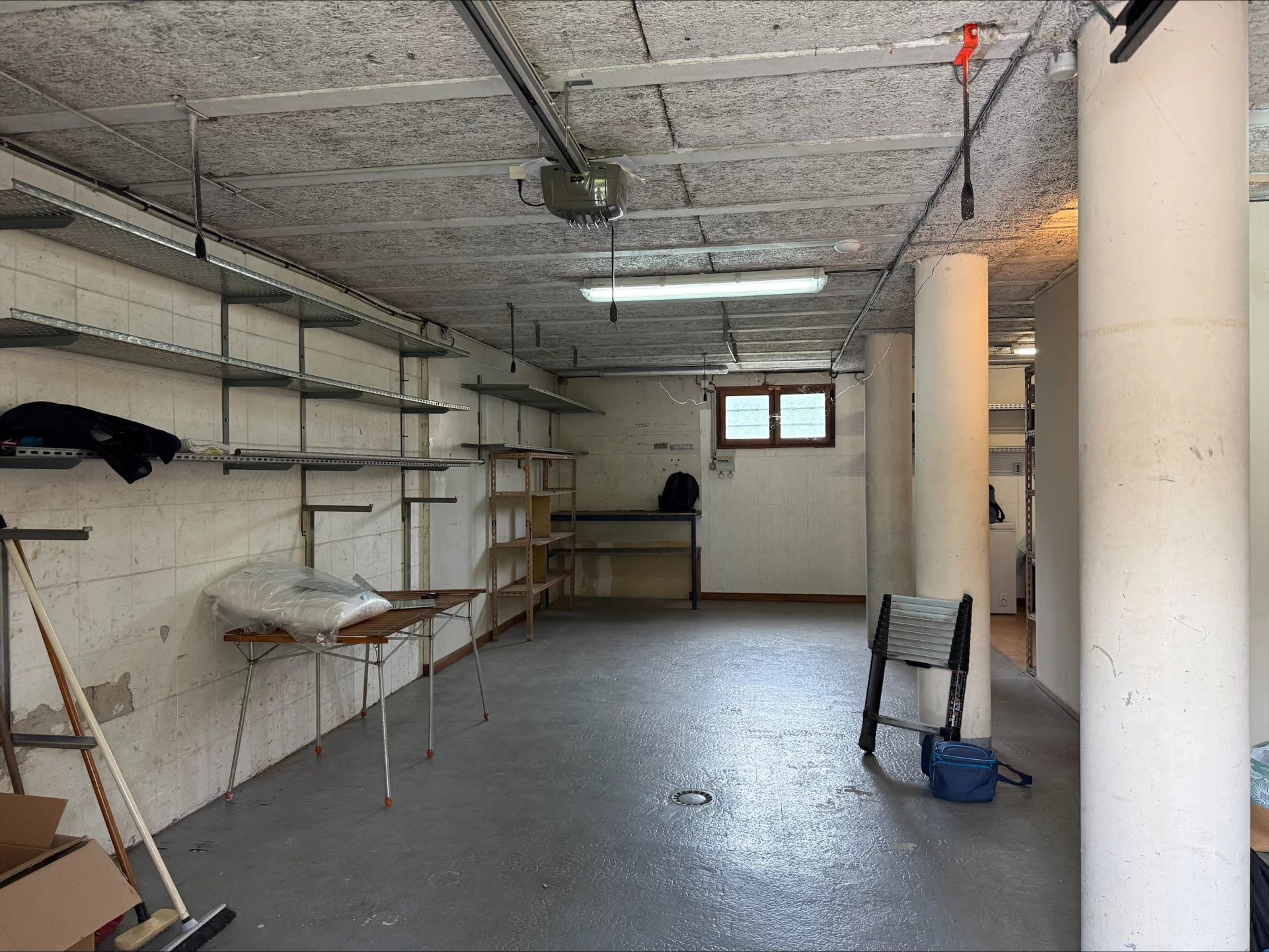 Au premier, vous trouverez une chambre dotée d'un immense placard, coin toilettes, un grand garage avec portail électrique.