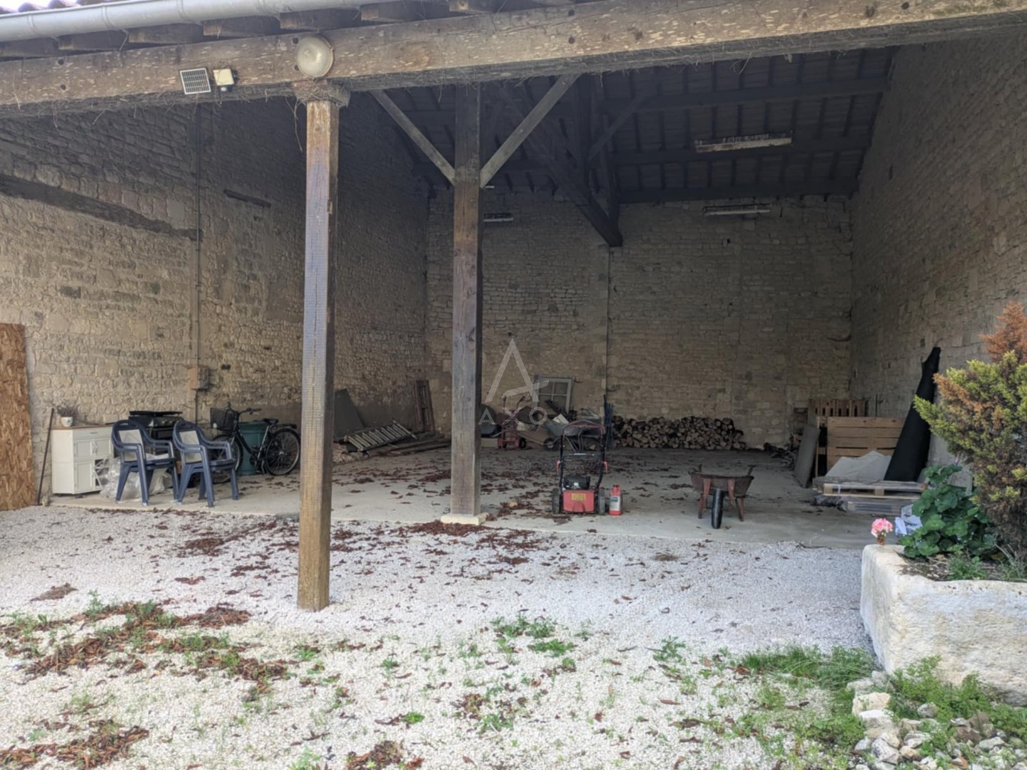 En centre bourg, commerces, écoles et services sur place ; Matha à 10 min, Cognac et St-Jean-d'Angély à 30 min.