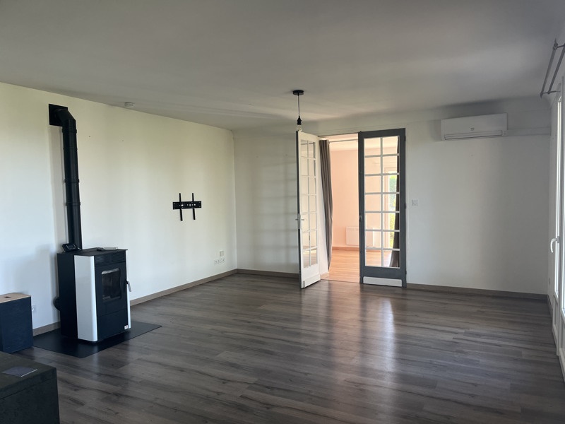 Située au calme, cette maison entièrement rénovée, est composée d'une cuisine ouverte sur le séjour avec poêle à granulés et climatisation, une salle d'eau, deux chambres dont une avec dressing, une mezzanine.