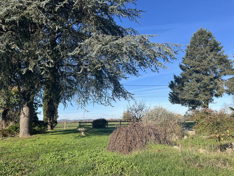 Le jardin est arboré avec un puits.