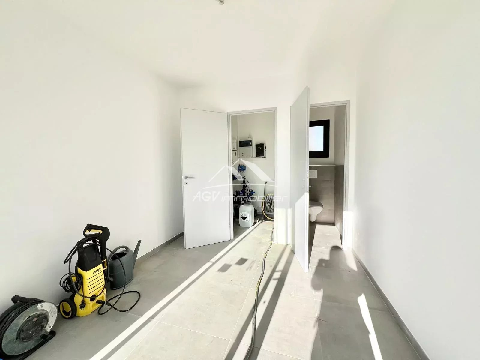 Une buanderie pratique permet l'accès direct au garage carrelé.