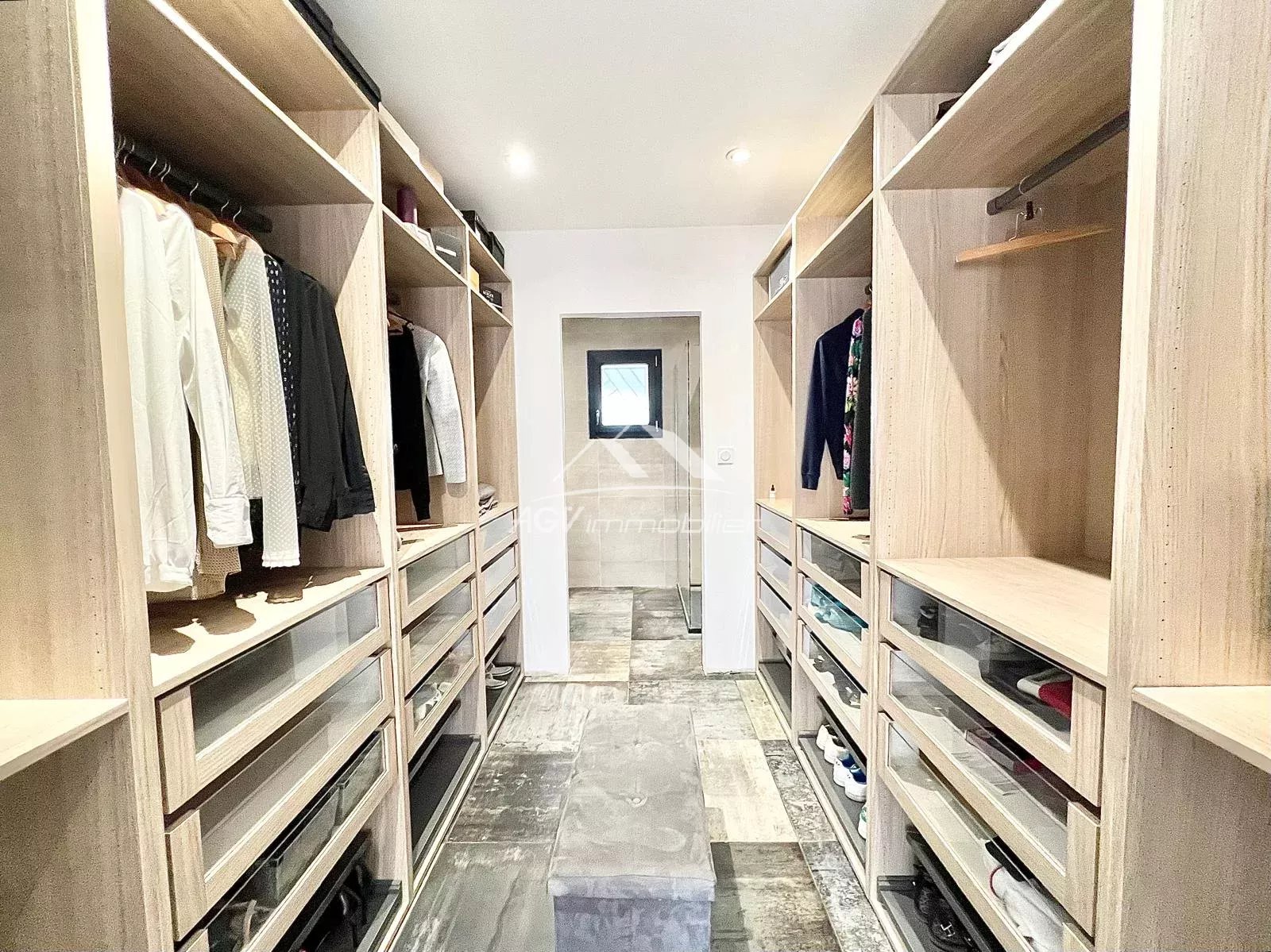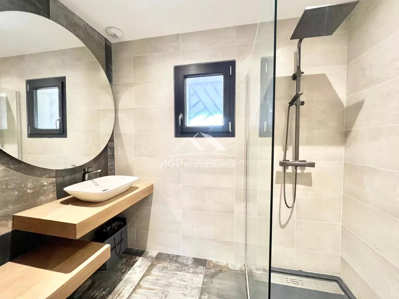 Le logement comprend trois chambres, dont une suite parentale avec salle d'eau et dressing, ainsi qu'une salle d'eau supplémentaire et des WC séparés.