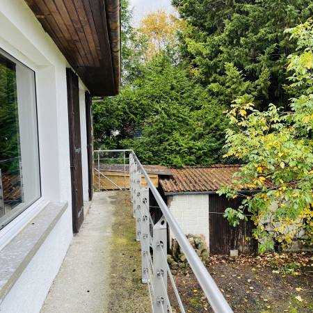 A l'étage : un palier, deux belles chambres et un wc avec un point d'eau.