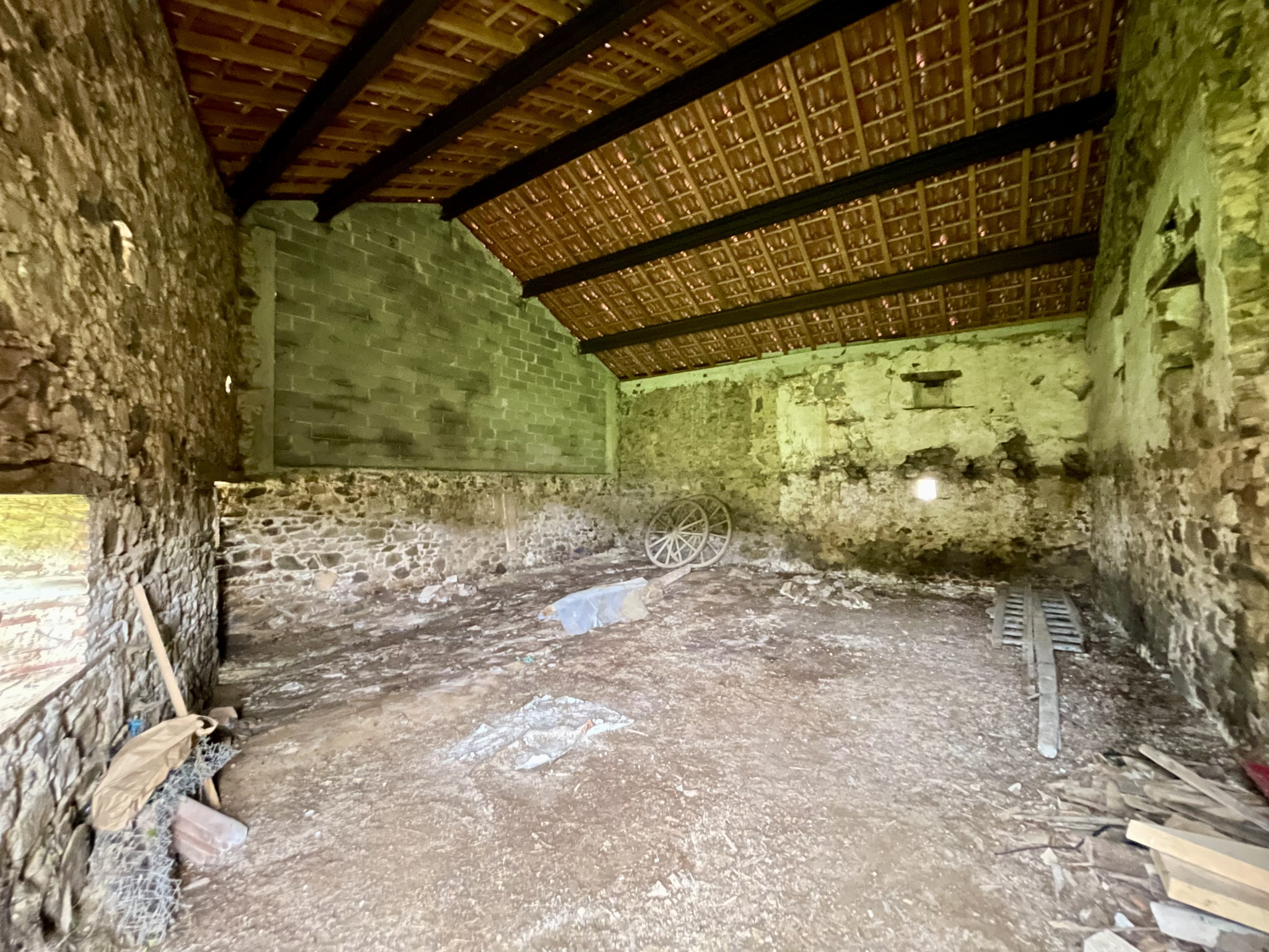 Il se compose d'un garage de 65 m2 avec remise de 73 m2, ainsi que d'une ancienne maison d'habitation sans confort à rénover, comprenant :