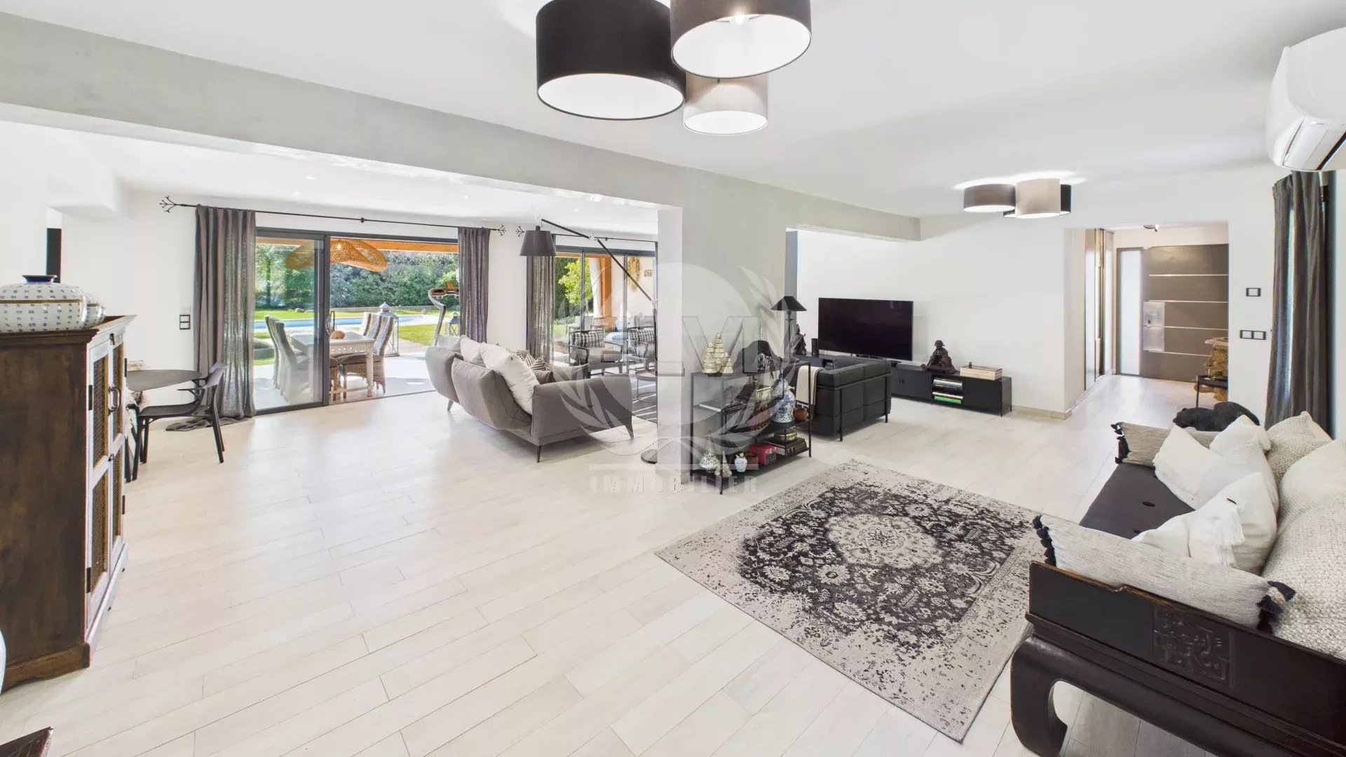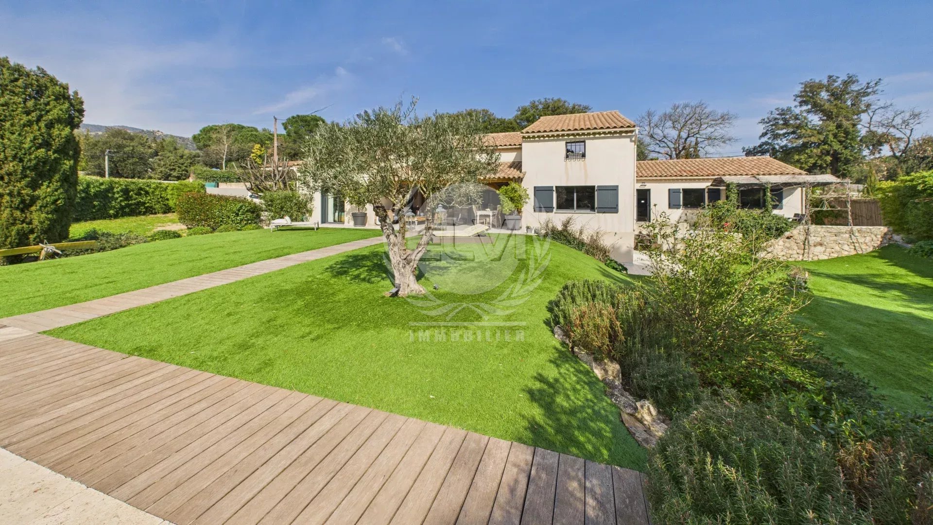 Superbe villa dans quartier résidentiel proche centre village sur 2130m² de terrain clos et arboré avec grande piscine chauffée et parking comprenant une entrée donnant sur un vaste salon/séjour avec accès sur une belle terrasse couverte et son magnifique jardin et une spacieuse cuisine équipée.La partie nuitée se compose au RDC d'une chambre avec dressing indépendant et sdbains/douches et à l'étage d'une chambre avec son espace douches, d'une salle de bains indépendante et de 2 autres spacieuses chambres.