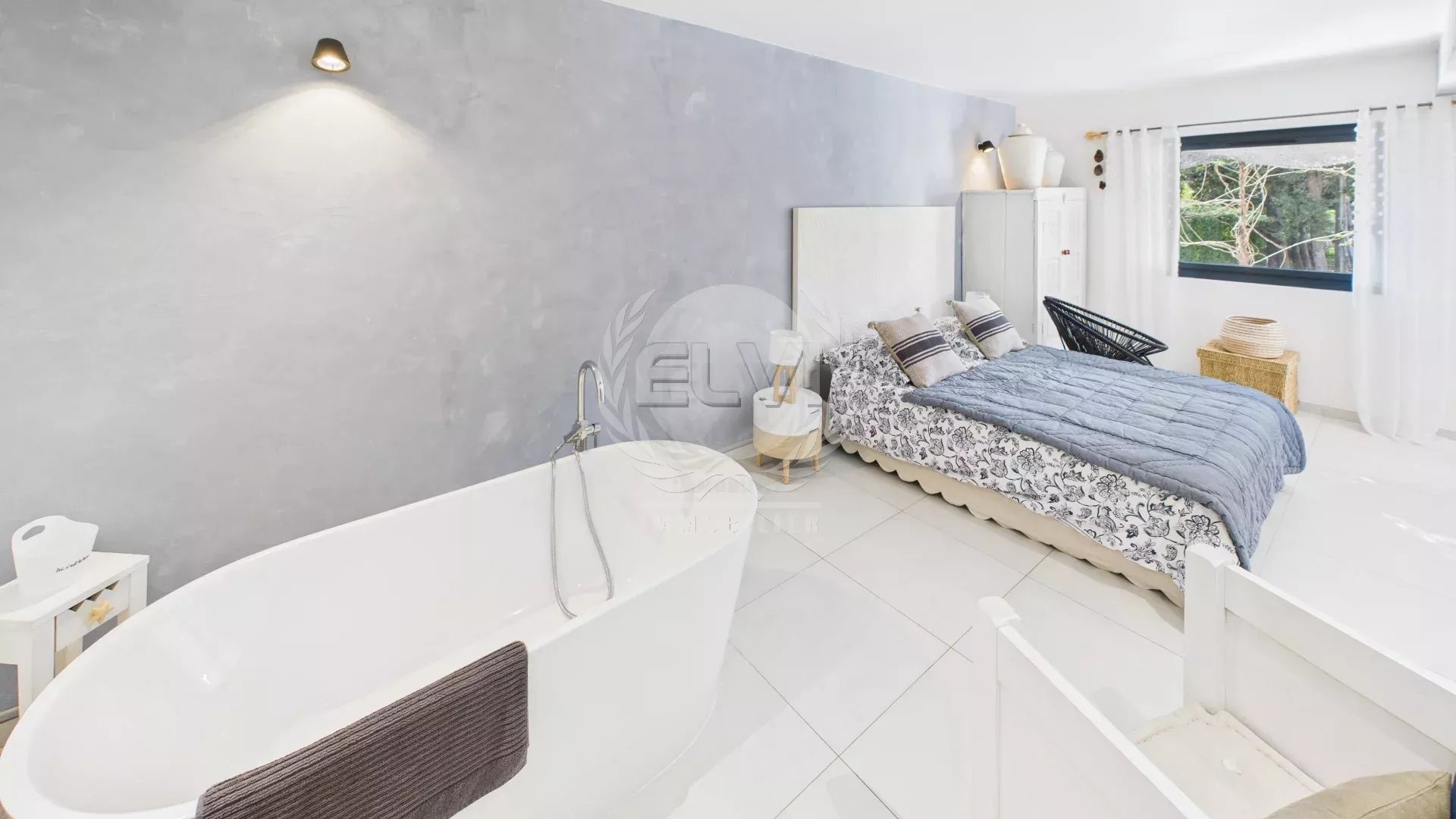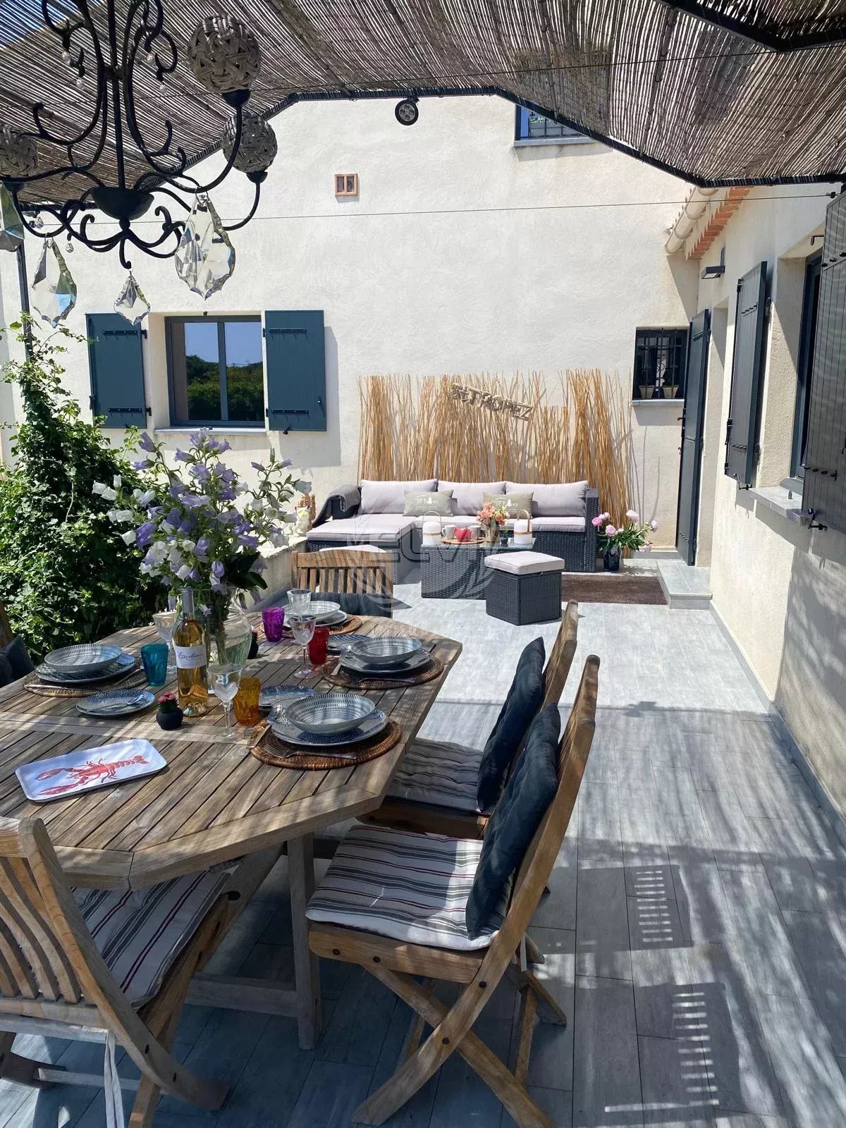 Une dépendance comprenant un grand séjour avec cuisine équipée et son accès sur une charmante terrasse couverte auquel viennent s'ajouter 2 chambres avec leur espace salle de bains viennent compléter les prestations de luxe de cette villa.