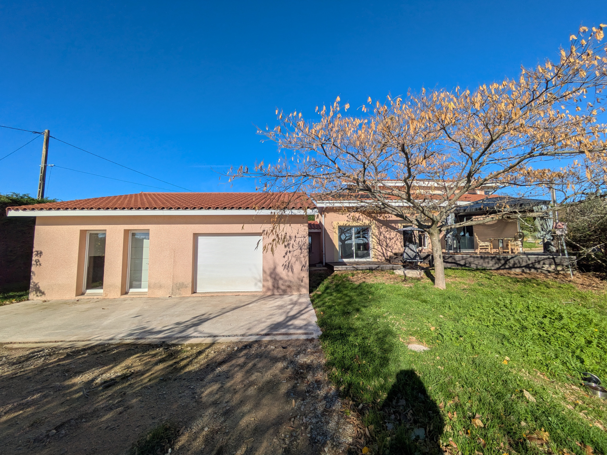Une extension a été bâtie, pour environ 100m2, pouvant être reliée très facilement à la maison initiale (les photos sont les trois dernières de l'annonce).