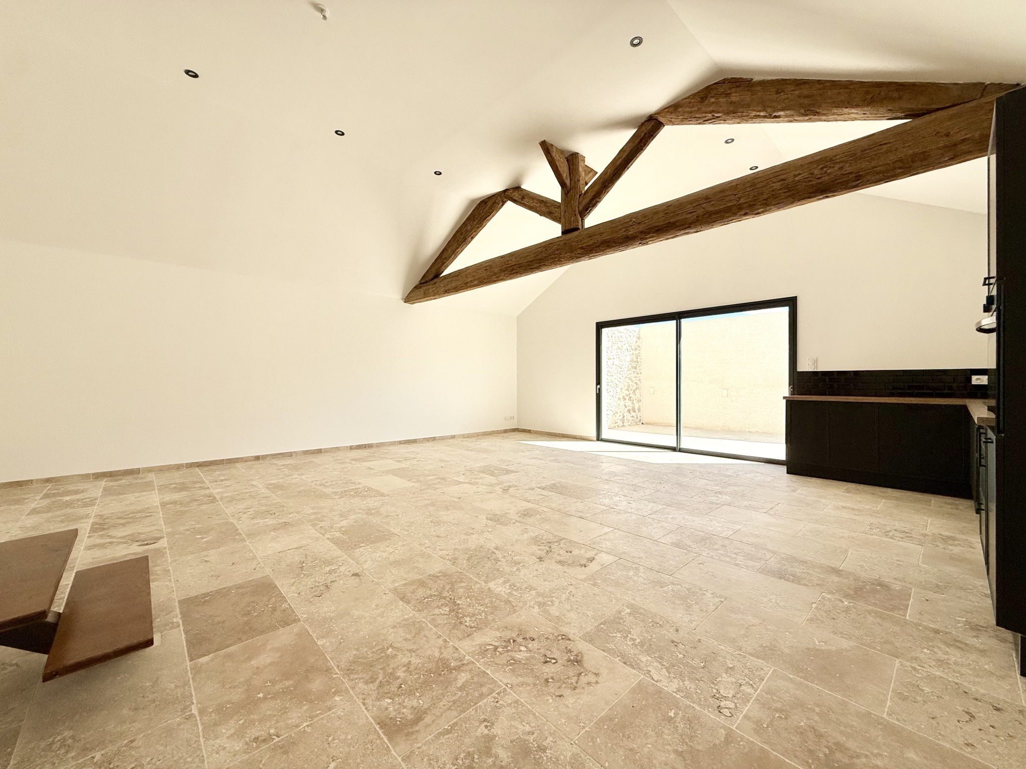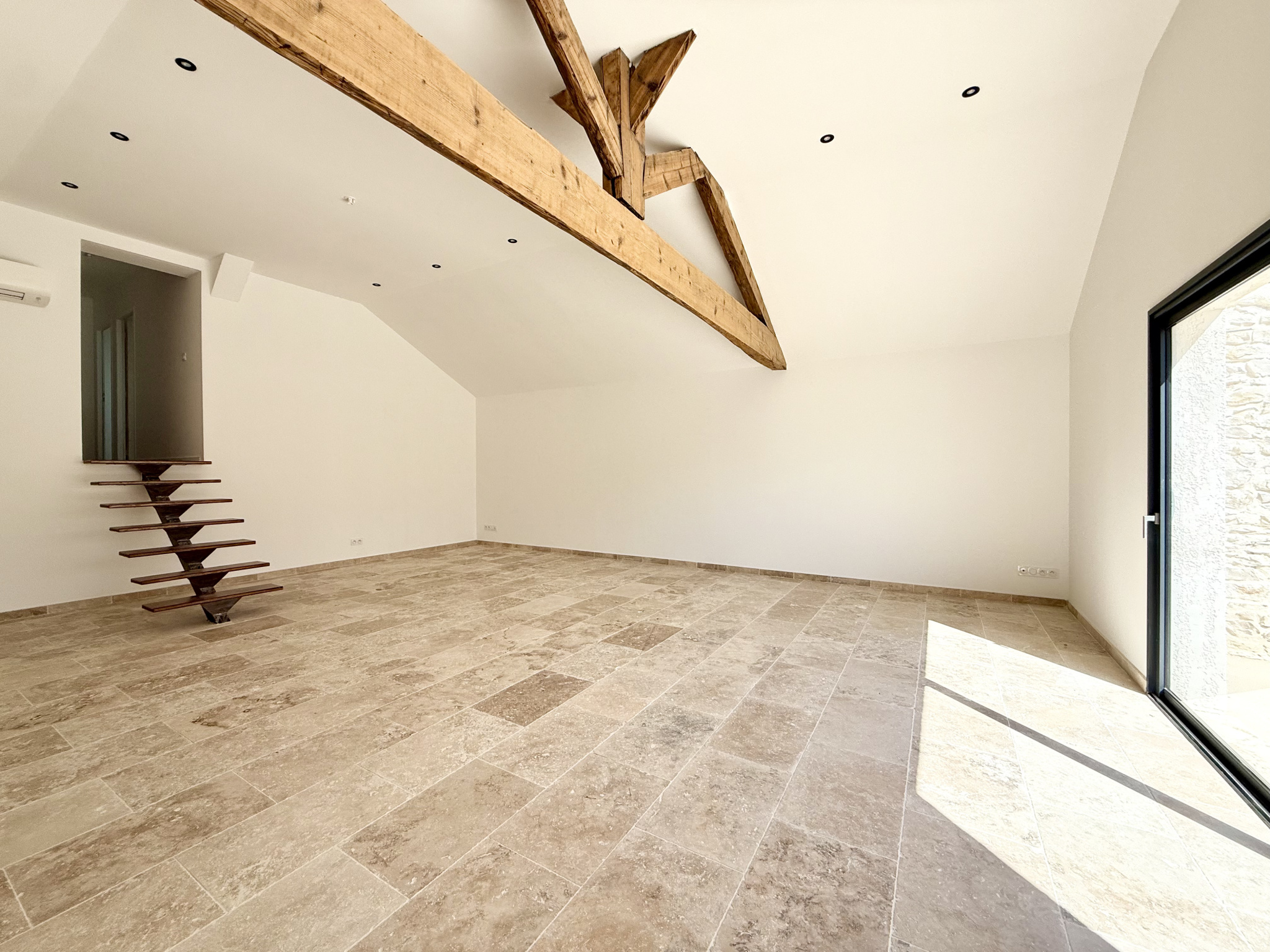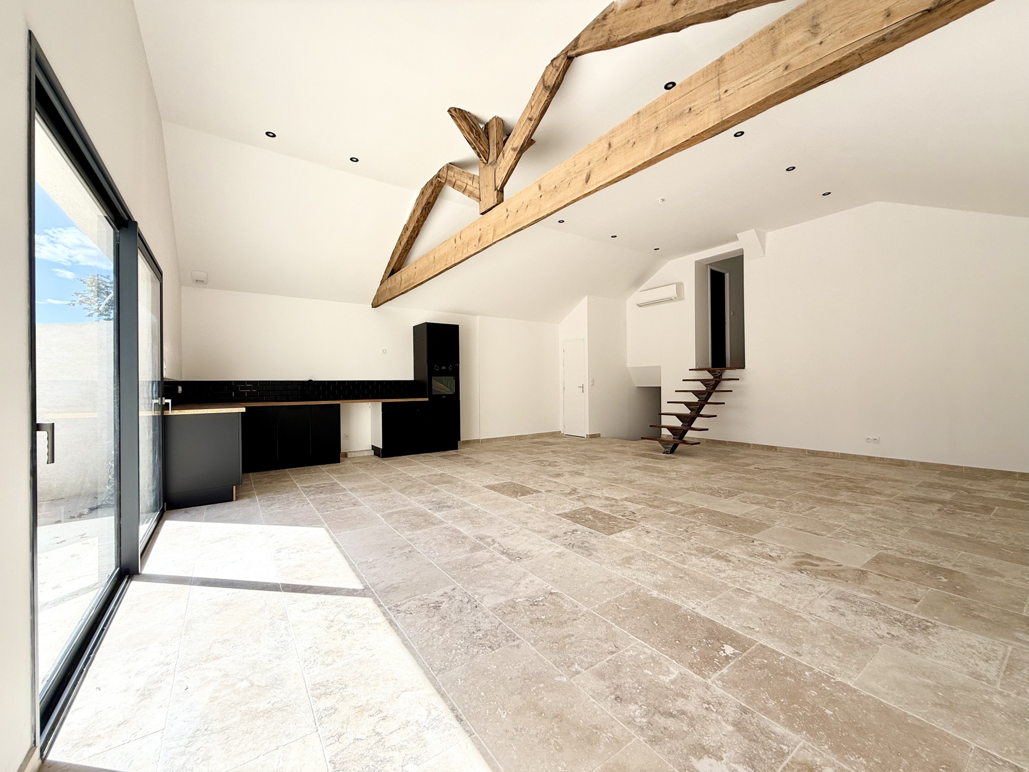 En exclusivité à Vergèze, découvrez cette charmante maison de ville entièrement rénovée, du sol à la toiture, dans un esprit loft Elle séduit dès l'entrée par son vaste séjour cathédrale, sublimé par une poutre centrale d'époque et un élégant carrelage en travertin, le tout ouvrant sur une agréable terrasse sans vis-à-vis.L'espace nuit se compose d'une salle d'eau avec WC et de trois petites chambres (ou deux grandes, selon vos besoins). Un grand garage et une buanderie complètent l'ensemble.