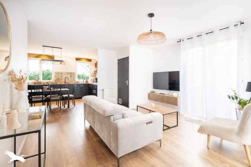 Elle se compose d'une cuisine équipée, un salon-séjour lumineux, deux chambres et d'une terrasse exposée plein sud avec un jolie jardin paysagé et clos, située dans une impasse dans un quartier calme, proche de toutes commodités.