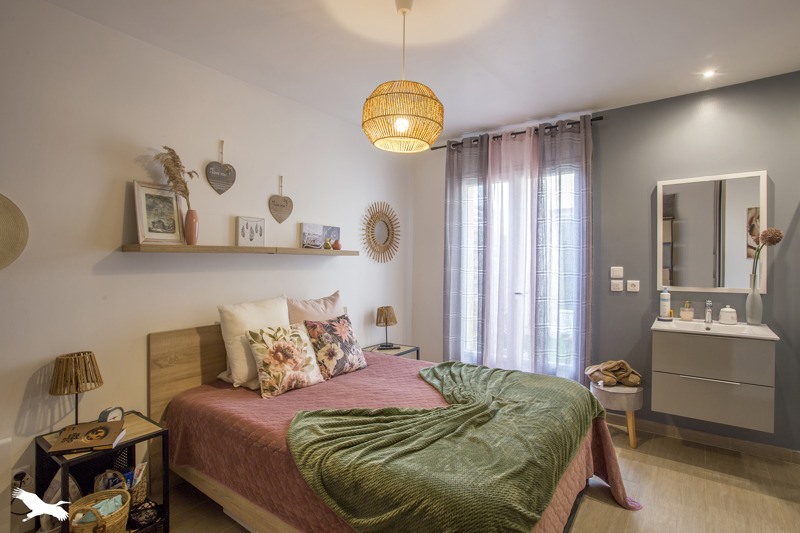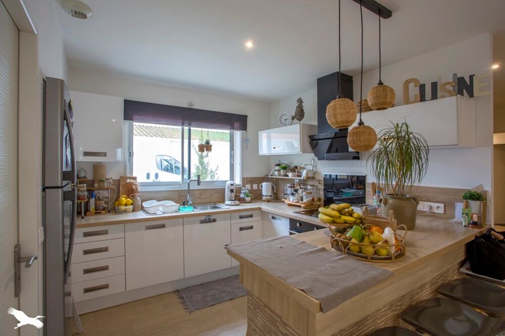 Proximité immédiate de La Rochelle, maison contemporaine de 2015 de plain pied comprenant un vaste séjour lumineux, une cuisine équipée, un cellier, trois chambres dont une suite parentale, une salle d'eau, deux wc.