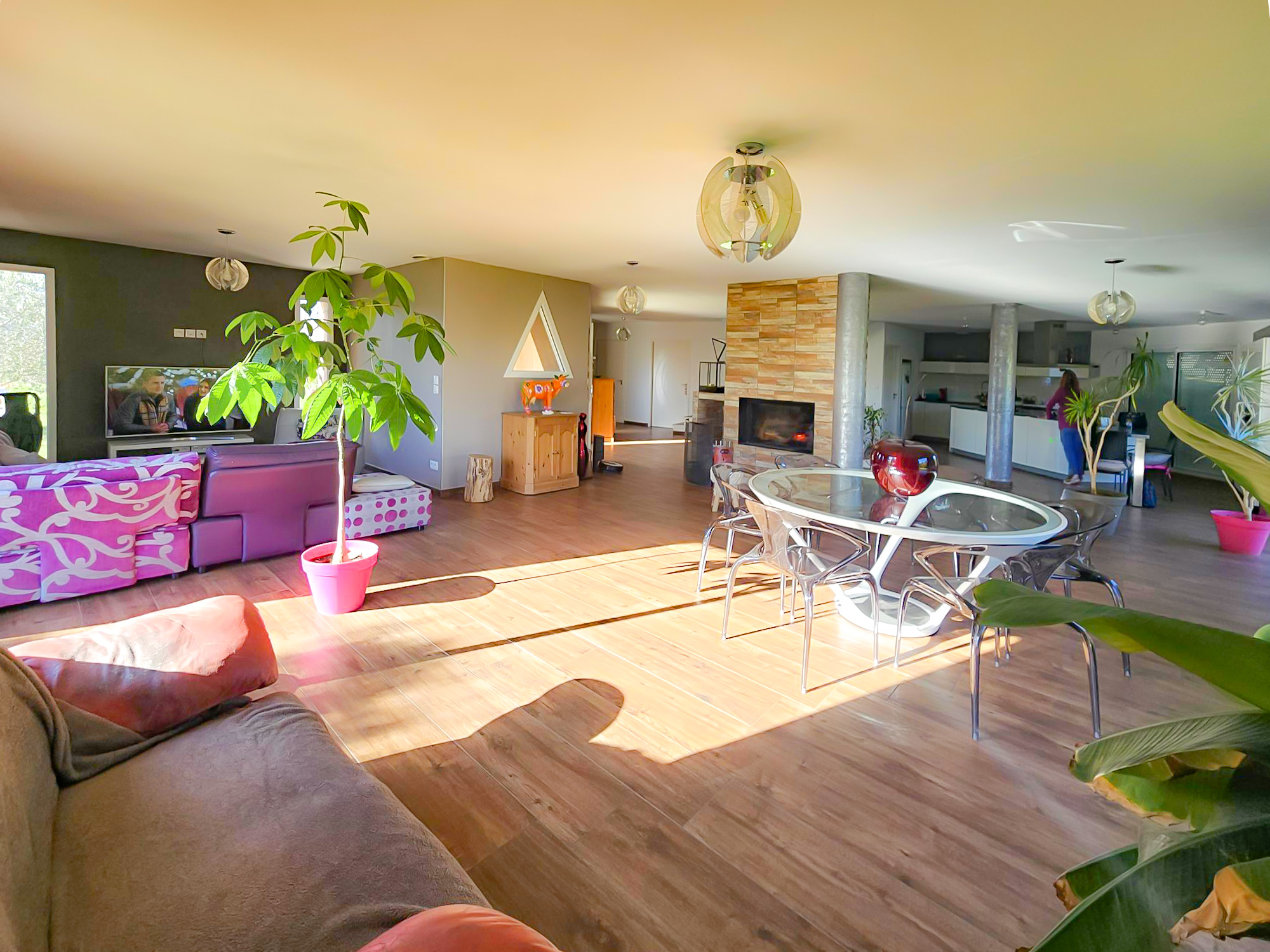 EN EXCLUSIVITE - Maison pleine de charme de 180m2 + garage d'env. 20m2 , sur un terrain de 1200m2 plat, entièrement constructible et piscinable située à 5mn d'une gare, à 18 mn de Vienne et 10 mn de l'accès autoroute de Reventin Vaugris. Elle offre un beau volume, 3 grandes chambres dont une suite parentale de 20 m2 et une chambre de 15m2, au rez de chaussé et 1 chambre à l'étage de 22m2 s'ouvrant sur une terrasse de 7m2 avec vue panoramique sur le Pilat. Une pièce à vivre de 100m2 environ avec cheminée centrale, de grandes baies vitrées s'ouvrant sur le jardin, cuisine américaine entièrement équipée dînatoire. Belle maison familiale avec un bel espace à vivre, un secteur calme et agréable à vivre...Coup de coeur assuré !!!!