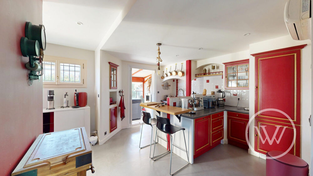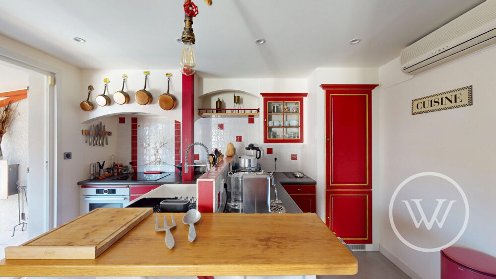 Cette maison atypique de 1984 a profité de différents travaux récents notamment : ravalement de façade, réfection et étanchéité toiture, changement des fenêtres à l'étage, ré-aménagement complet du RDC, changement PVC armé piscine, changement chauffe-eau et 2 clim, pose VMC...