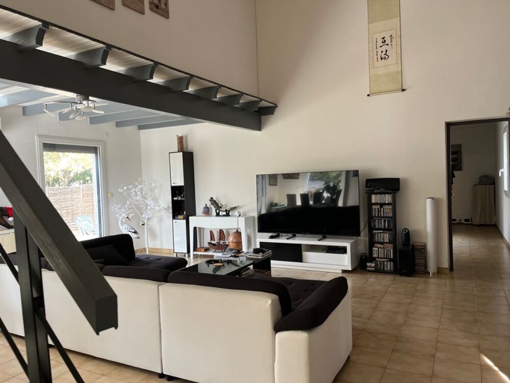Spacieux séjour, grande cuisine dinatoire toute équipée, 3 chambres en rez-de-chaussée et belle mezanine fermée à l'étage.