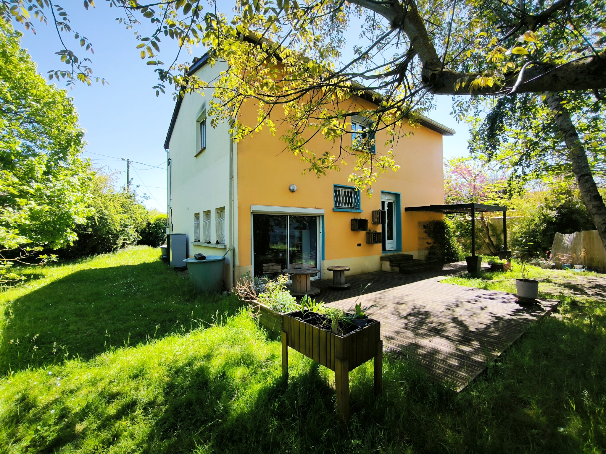 Sur une parcelle arborée d'environ 700 m2, profitez d'un jardin intime et verdoyant, parfait pour les moments en famille, les jeux d'enfants ou les repas en extérieur grâce à sa terrasse accueillante.