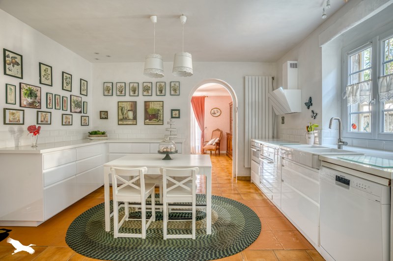 Entrée, véranda, salon, cuisine équipée, bibliothèque, 3 chambres dont une suite parentale, salle d'eau, 2 salles de bains, salle de cinéma.