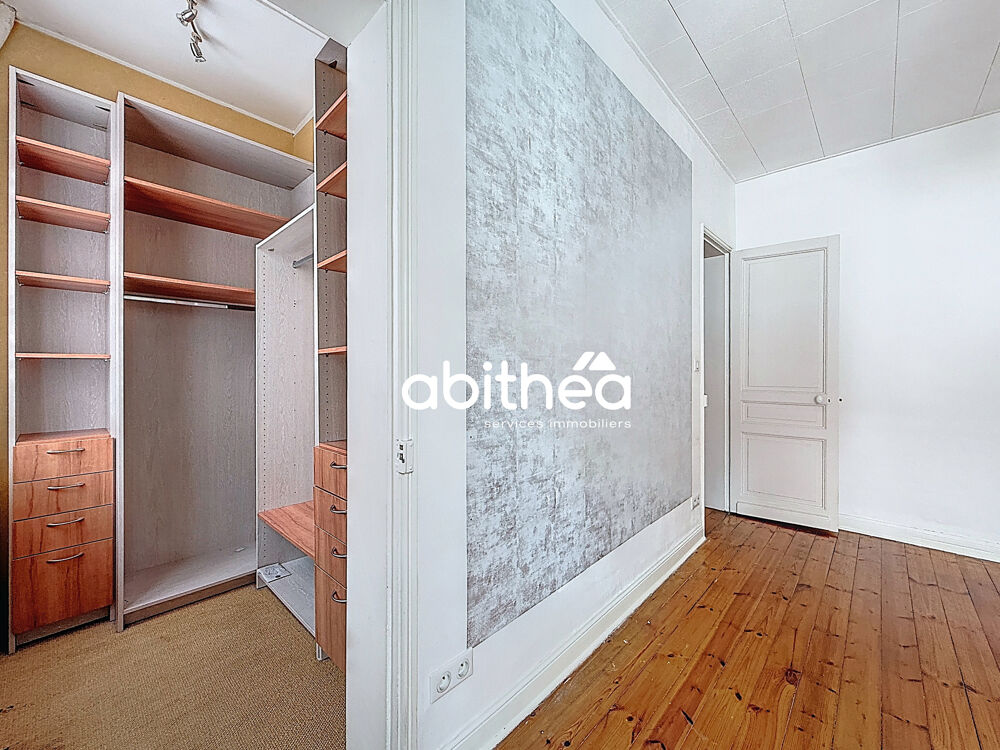 Au premier étage, un palier avec plancher d'origine dessert deux grandes chambres (15 et 19m2) avec placards et dressing intégrés, optimisant l'espace, ainsi qu'une salle d'eau avec WC de plus de 6m2.