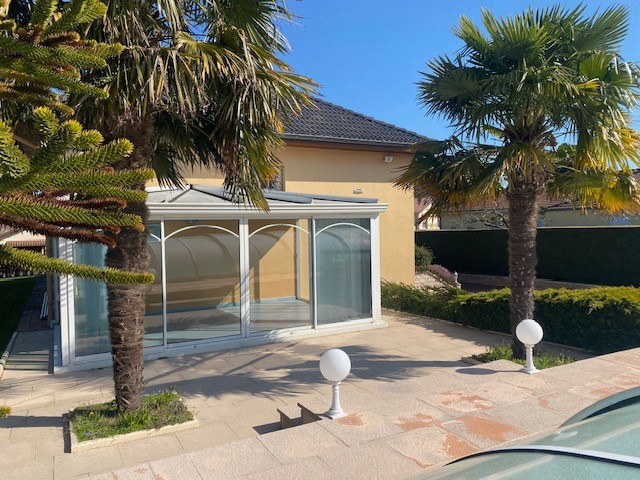 À l?extérieur, une très belle véranda permet de profiter de la vue sur la piscine de 10 m x 5 m, équipée d?un abri coulissant.